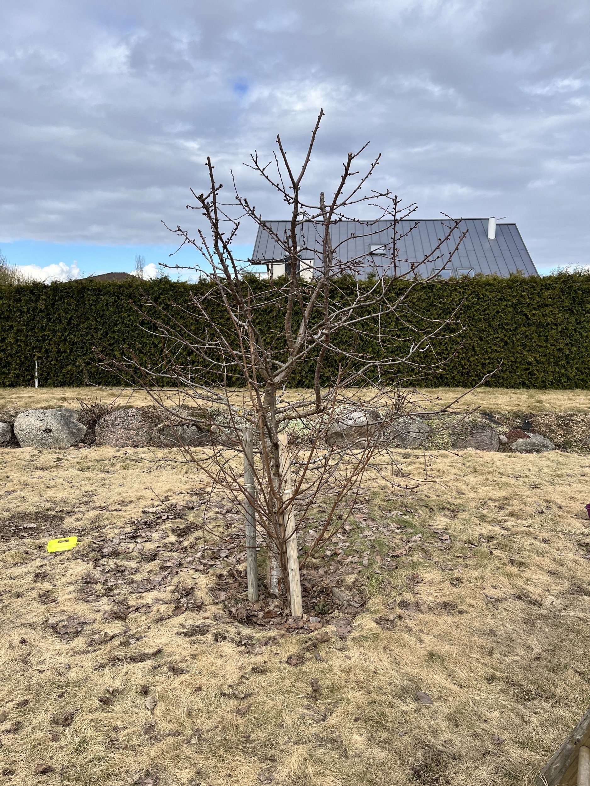 * Ühe viljapuu mahavõtmine, kivide eemaldamine selle ümbert, muruga asendamine