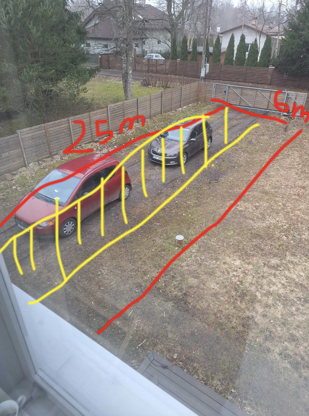 Soov oleks välja ehitada peenkruusast sissesõidu tee. Pildil kollasega markeeritud osa on juba pinnas kooritud
