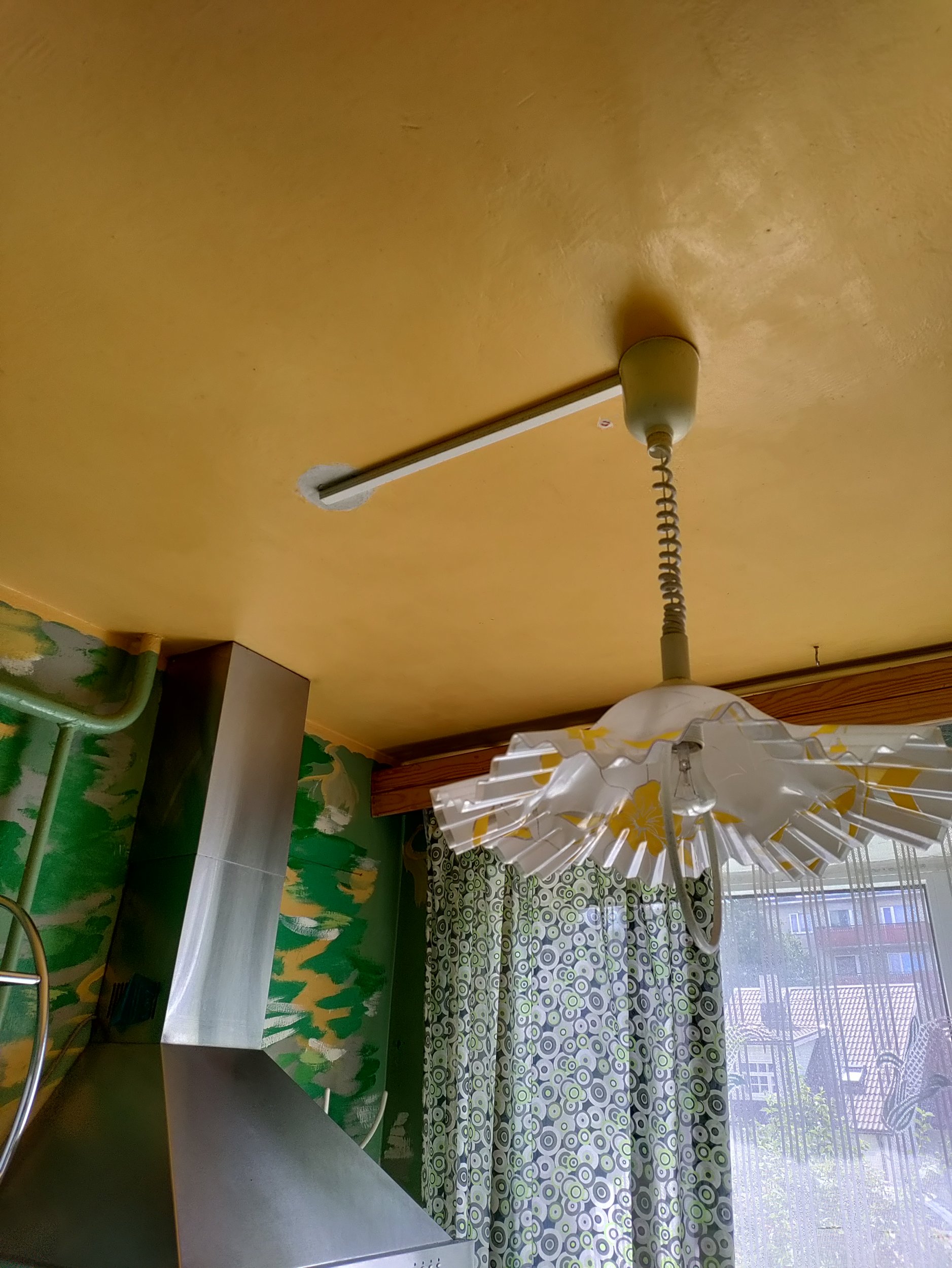 Köök: Lae värvimine valgeks ja pildil nähtava juhtme peitmine lae sisse.