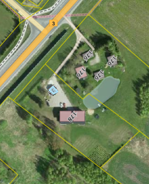 Ehitisteatis tuleb antud juhul tagantjärele, sest abihoone ehk garaaž nr 1 on juba valmis ehitatud (sinine ruut kuvatõmmisel).