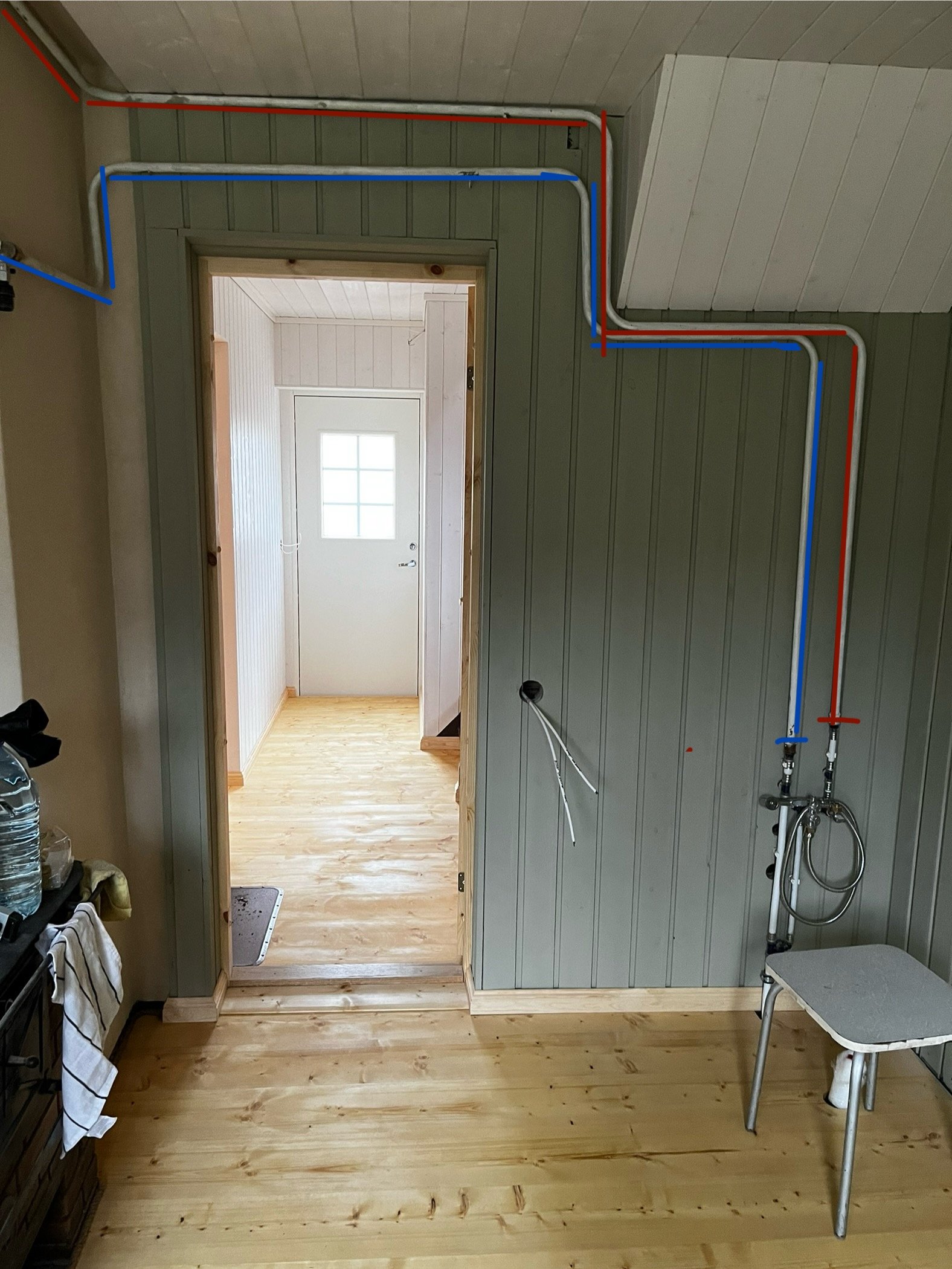töö 2. torud seina peal märgitud sinise (külm)ja punasega (kuum) uuendada, välja vahetada nt valge alupex toru vastu, torud seinale või lae alla jooksma , niiet üldpilt viisakas jääb.