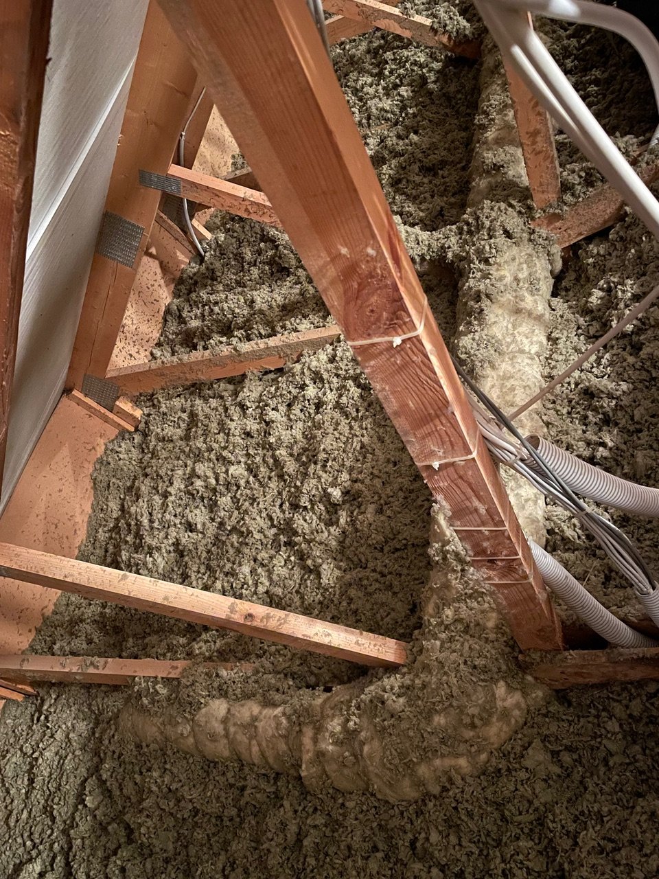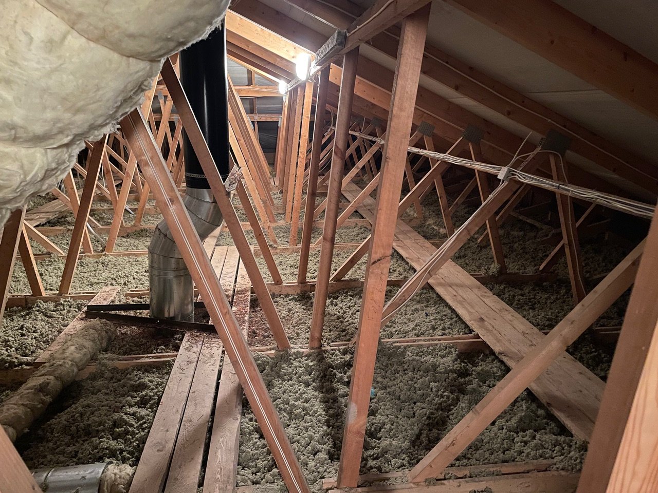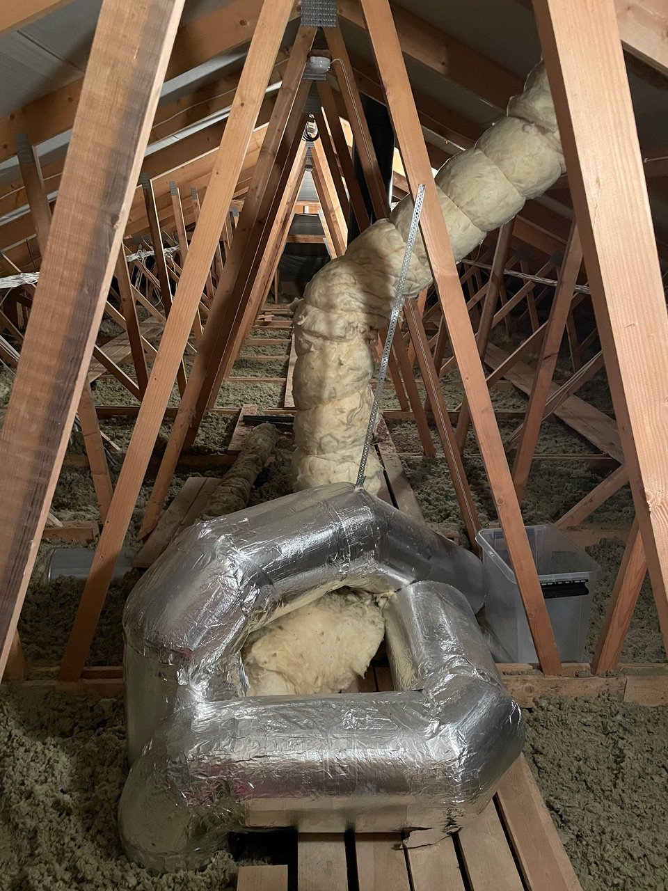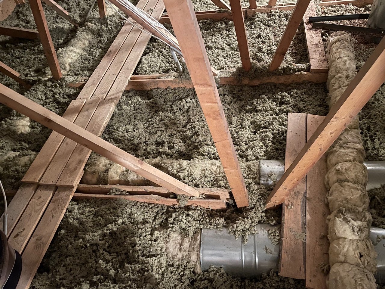 Vana soojustuse asendamine uue ja kaasaegsega. Ventilatsioonitorud asuvad pööningul.