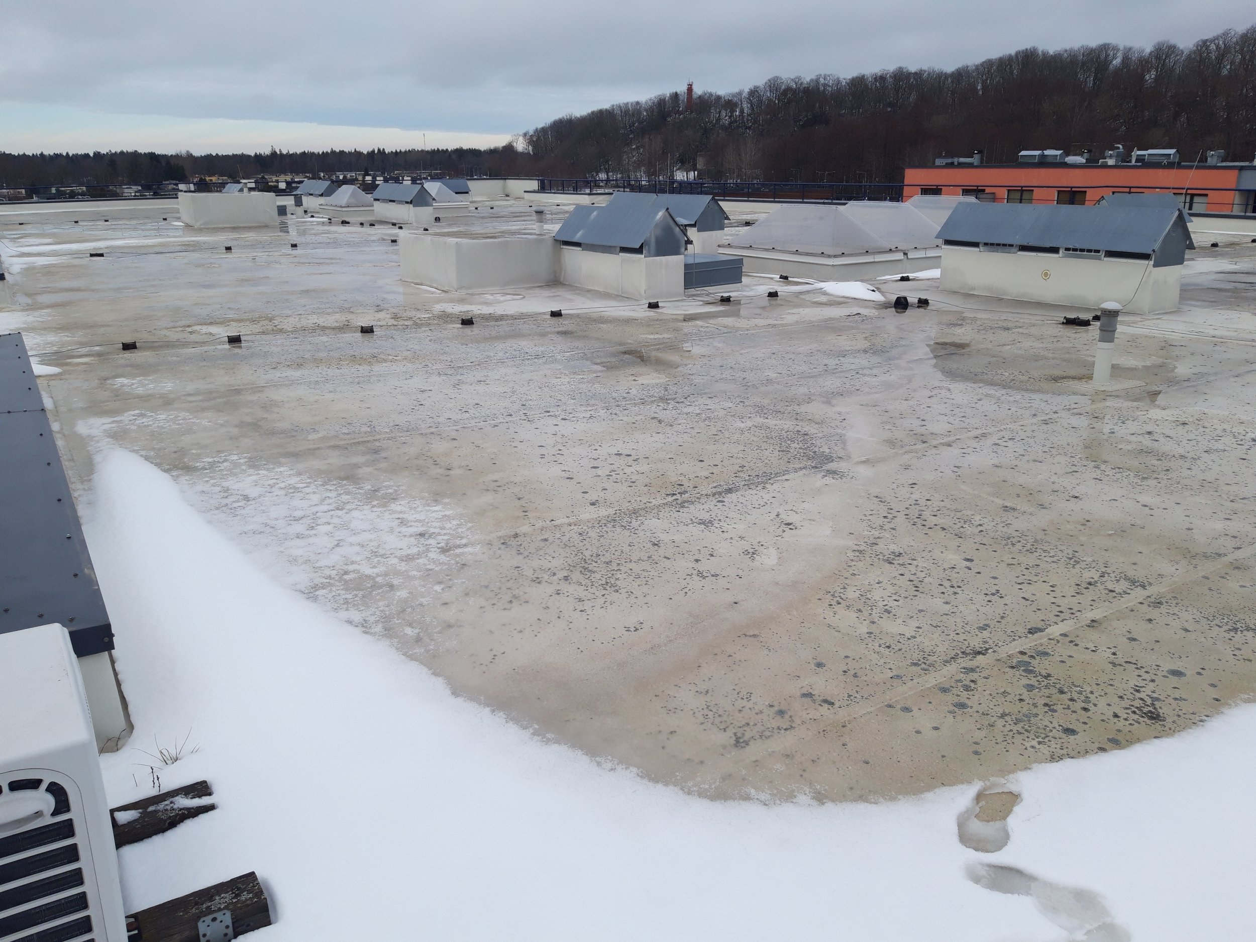 Katuse puhastamine samblast. Katuse materjal - SBS. Pindala - 2 korda 1000 m2 (2 korpust). Tegemist 5-kordse majaga, ligipääs tarbeveele esimesel korrusel.