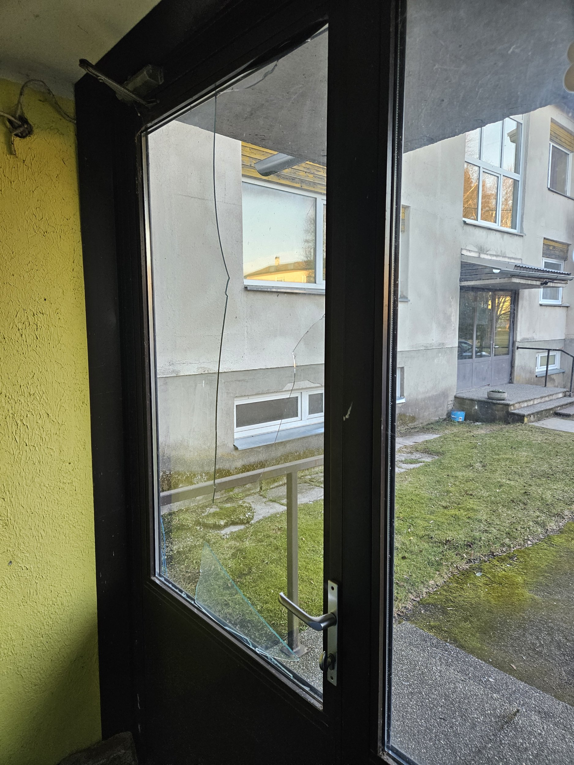 Purunenud välisukse klaasi vahetus. Kuna äravõetav osa on vaid sisemine ja purunenud on välimine klaas, tuleb vahetamiseks kõigepealt sisemine klaas eemaldada. Ava mõõdud on: 82,5 cm laius, 145 cm kõrgus ja klaasi paksus originaalis on 5 mm. Tegemist peaks olema 2-kordse pakettaknaga.
