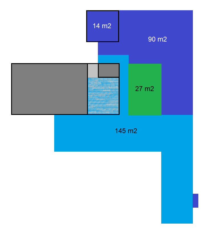 Joonisel helesinisega ala, mida on vaja tasandada/täita, kokku ca 145 m2.