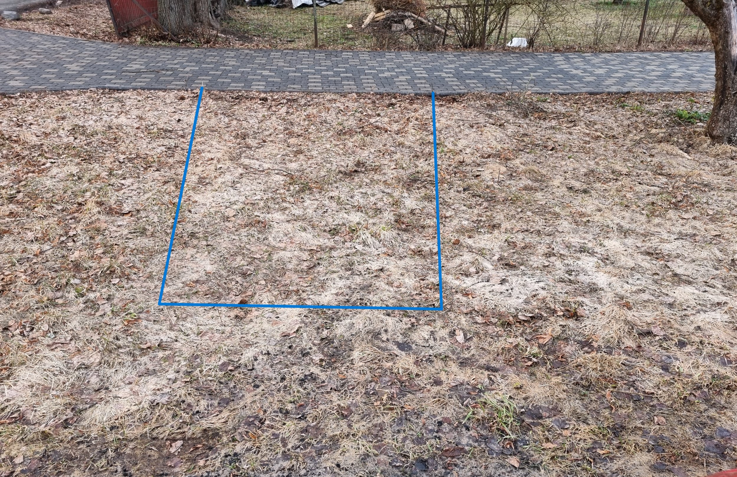 Auto parkimiskoha ettevalmistus - 15 ruutmeetriselt alalt tuleks koorida u 15 cm pinnast, katta geotekstiiliga, lisada 10-15 cm killustikku ja paigaldada mururestid. Lõpptulemusel peaks olema mururestid ühes tasapinnas pildi nähtava tänavakividest teega, mis hetkel murupinnast u 3-4 cm kõrgemal.