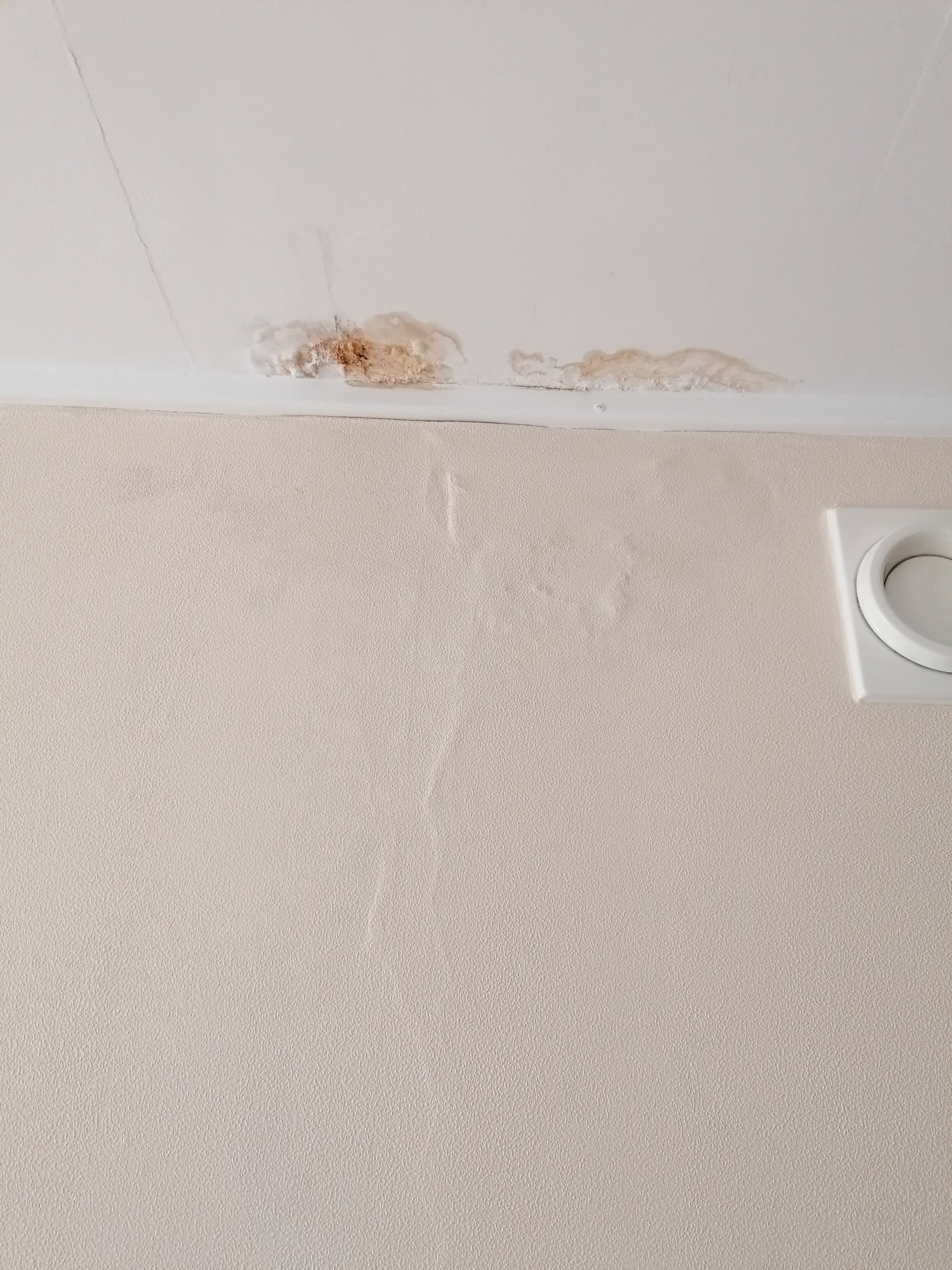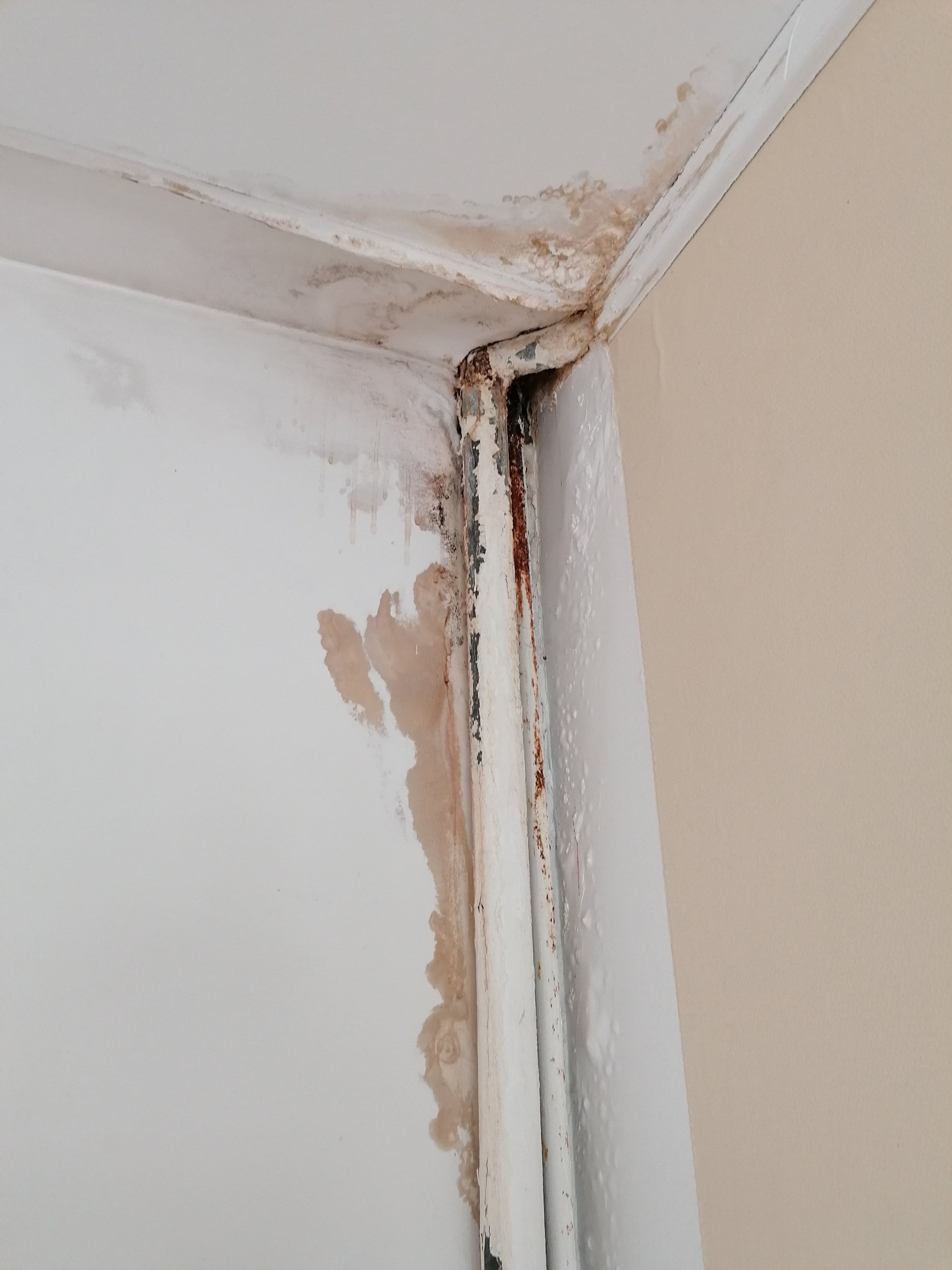 Keskkütte toru lekke tõttu tekkinud lae ja seinakatte korrutamine ja hallitus.