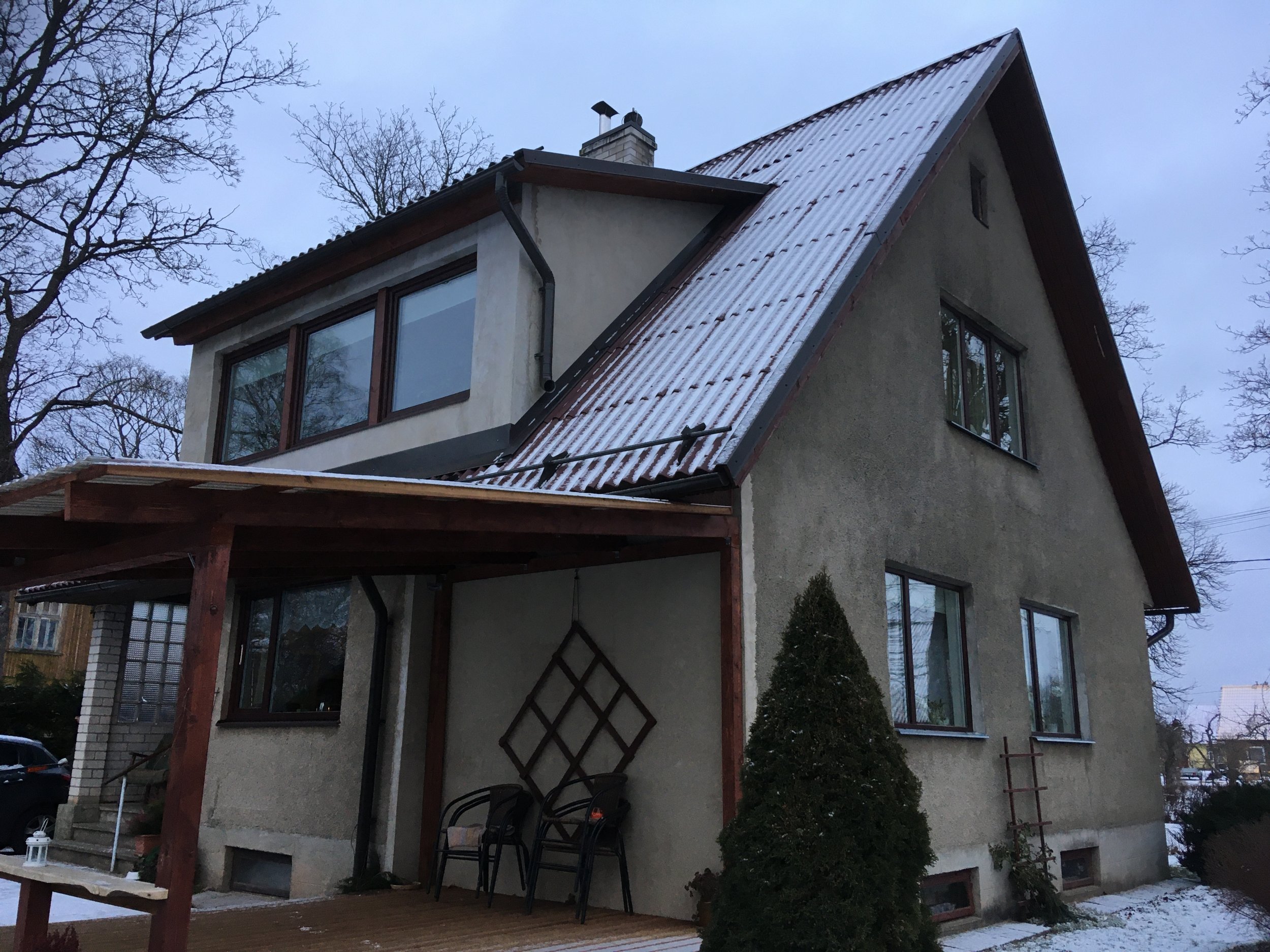 > Hoone kõikidele akendele paigaldada uued aknaplekid värvitud terasplekist (toon RR32 – tumepruun – Ruukki terastoodete kataloog), servade lõpetus ümarvaltsiga.