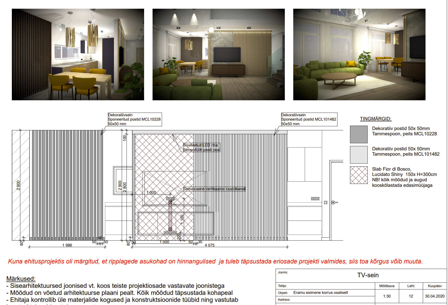 Sponeeritud palgid vastavalt joonisele TV seinale + LED valgustus vastavalt projektile.