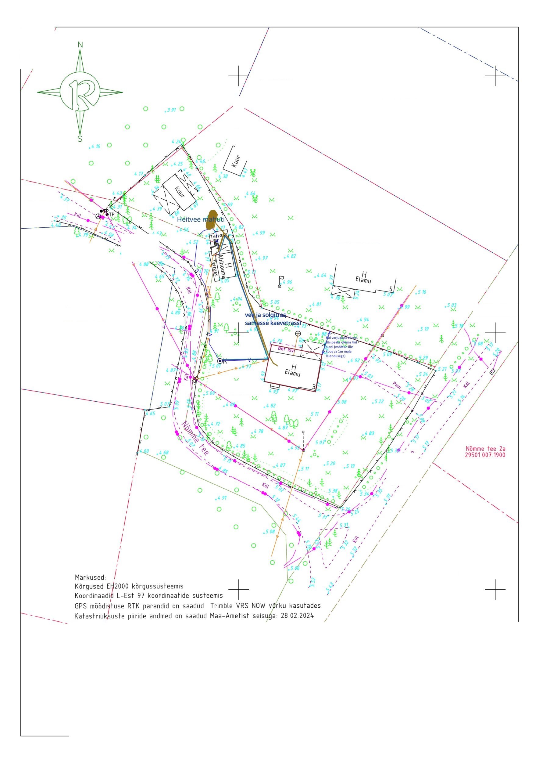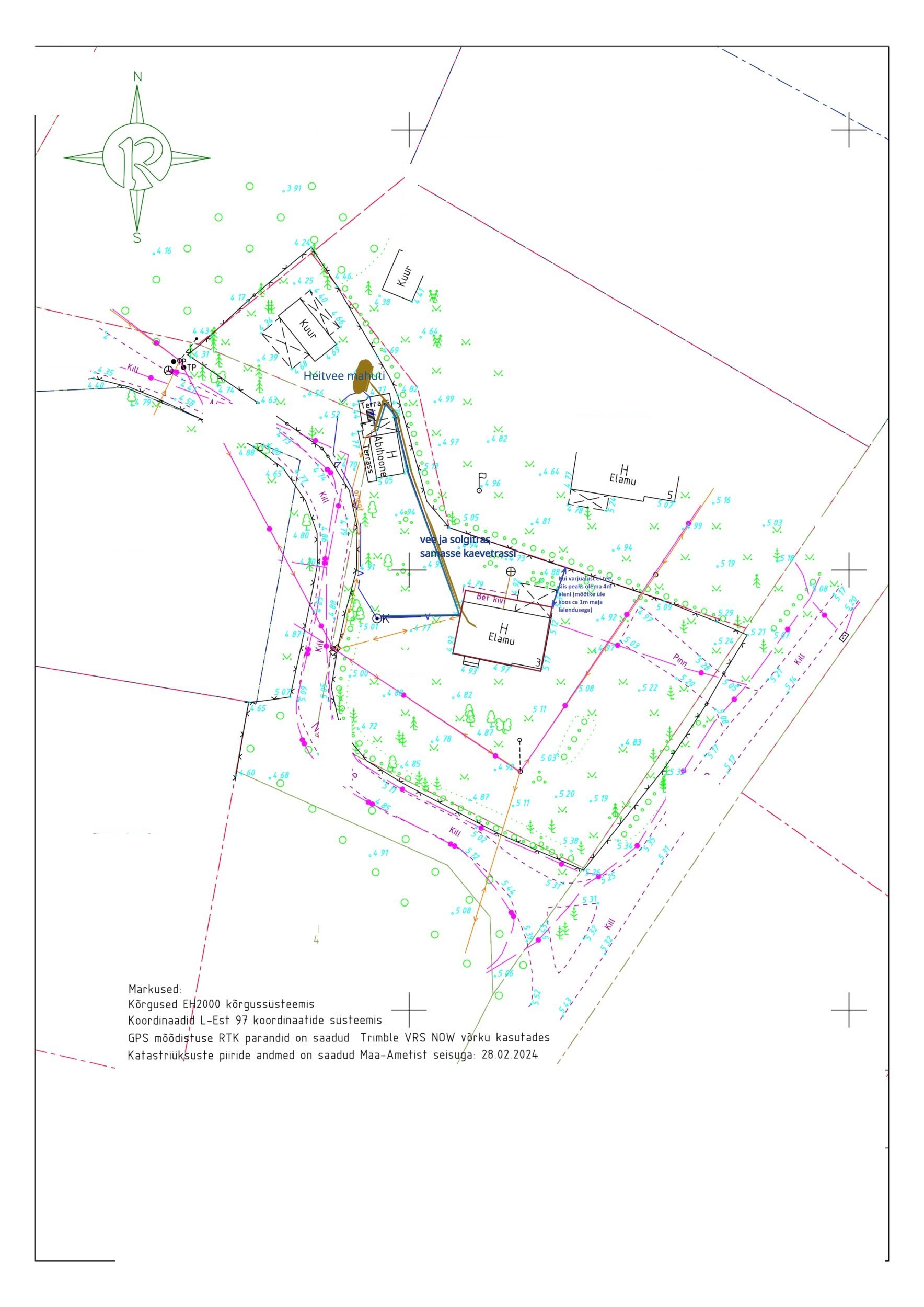 Kirjale lisatud geodeetiline alusplaan omapoolse täiendusega, kus peal on näidatud ära kuhu võiks tulla kogumismahuti ning kuidas võiks olla trassid ühendatud.