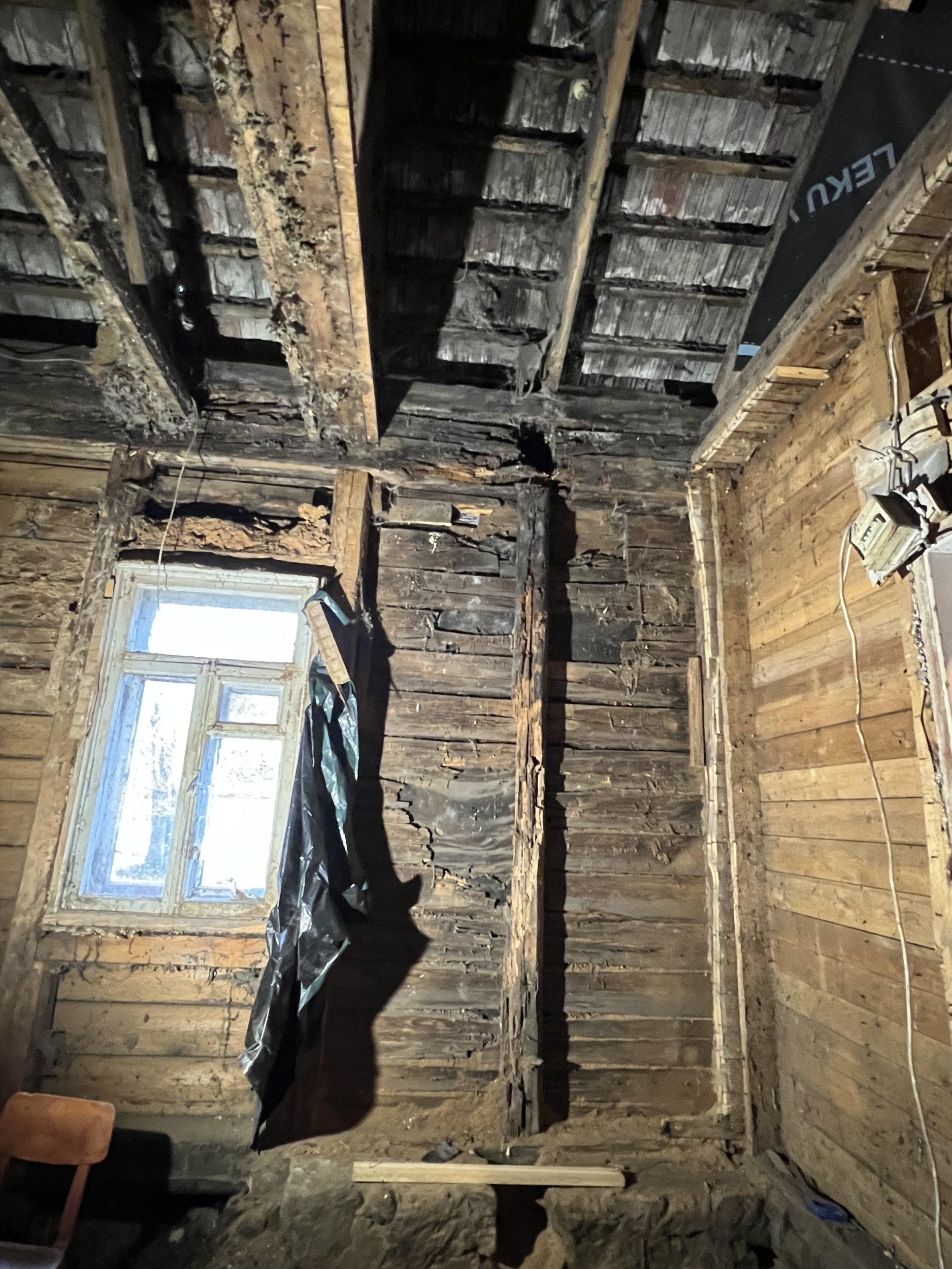 Vaja vahetada kaks laetala, üks seina püstine tala ja lisaks ka horisontaalne suur kolmekordne, kuhu toetub katuse sarikas. Seina augu kõrgus 3m, laius 1,8m.
