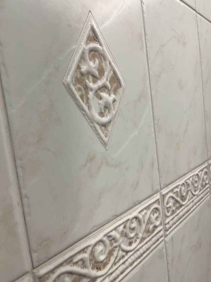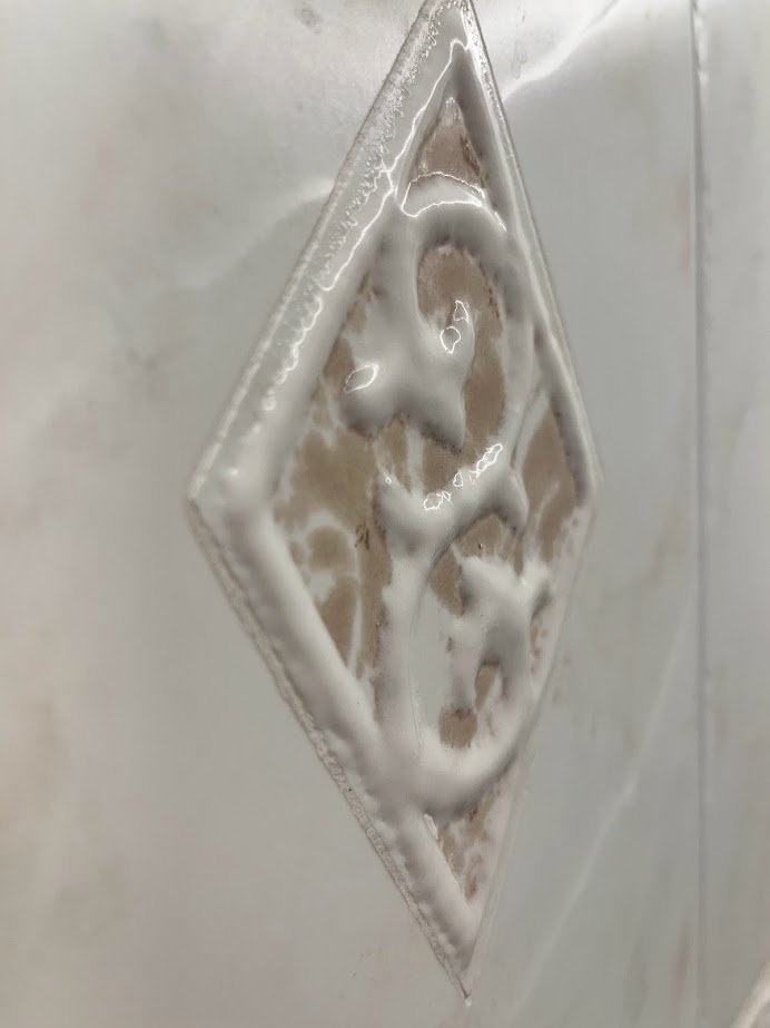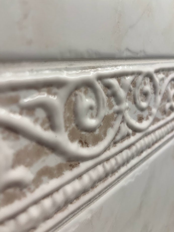 Keraamiline porte ja plaatidel olevad oranamendid on plaatidest pisut kõrgemad. Soovin, et need saaksid maha lihvitud, et kogu sein oleks ühtlane ja selle saaks ette valmistada mikrotsemendiga katmiseks.