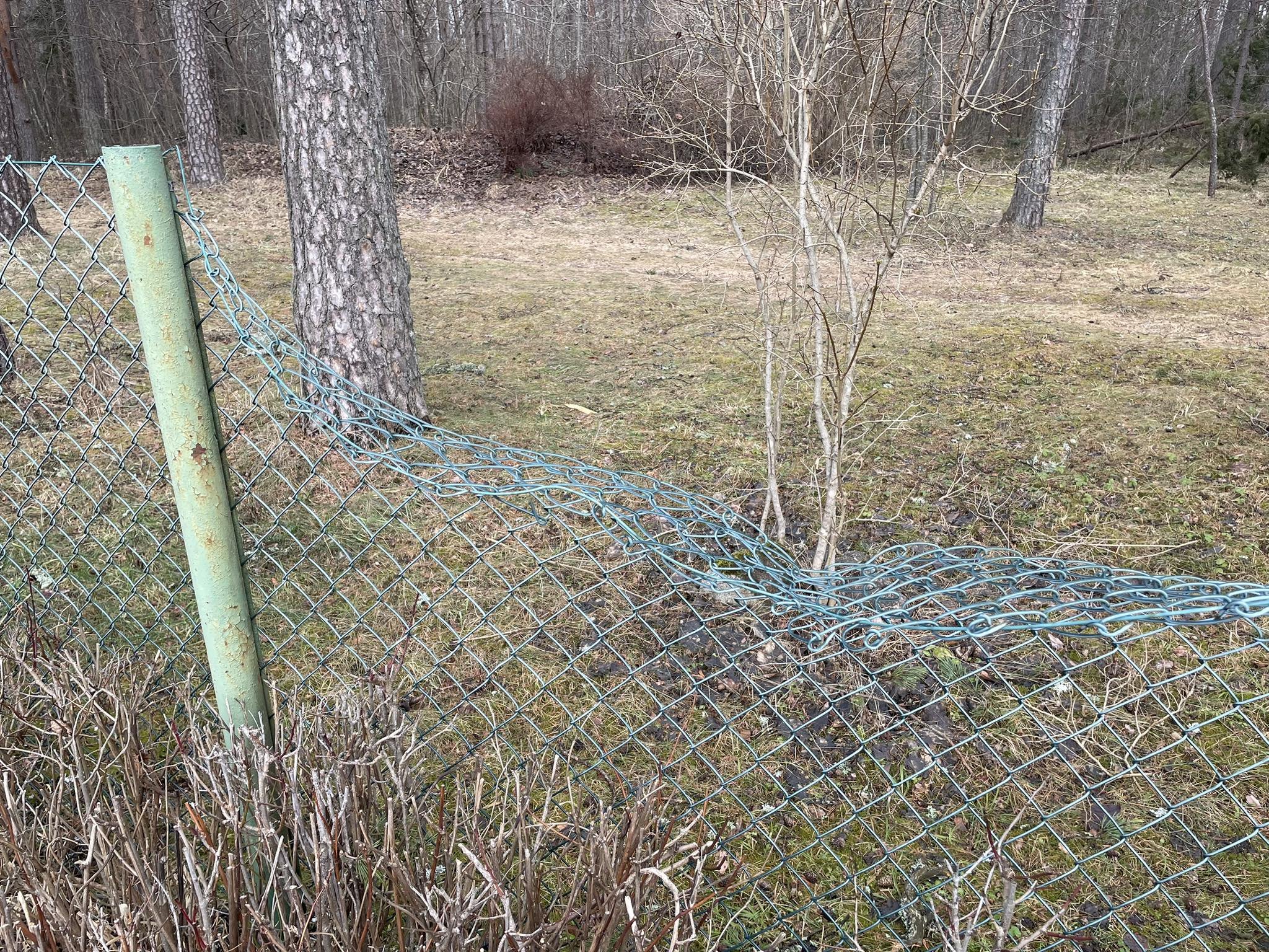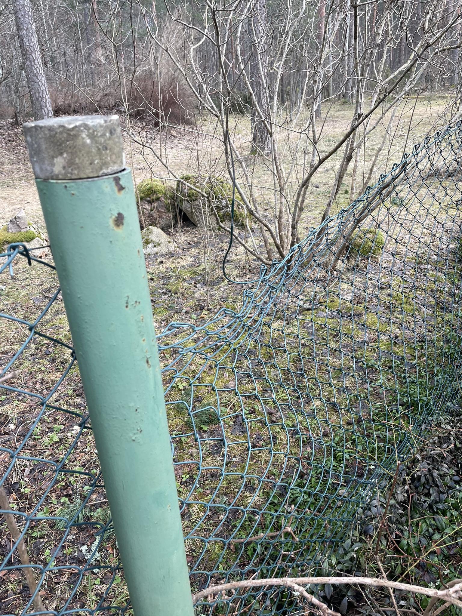 Otsin parandajat punuvõrgust tarale. Kahele postivahele (a 3,6 m) on vaja panna uus pingutustraat ja võrk üles pingutada. Traat ja pingutid on olemas.