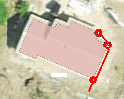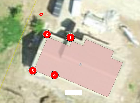 Maja lääneküljel puudub drenaaž ning vihmavesi on juhtud majast eemale ajutuiste vihmavereenidega. Märgistasin neli vihmaveerenni asukohta (punktid 1,2,3 ja 4). Kõik vihmaveerennid jäävad kivisillutise sisse, mis on plaanis sellel suvel rajada ning ka vastav töö tellida. See külg on ka kõige enam tähelepanu vajav.