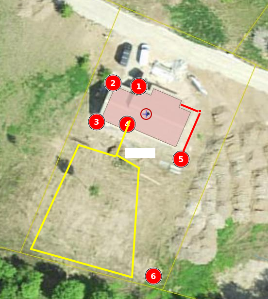 Maja ida- ja lõunaküljel on terrass, läbi mille on hetkel kokku kogutud ning ära juhitud suurema katuse piinna sajuvesi. Hetkel jõuab kokku kogutud vesi lihtsalt hoovi ning edasine drenaaž puudub. Mainin ka, et maja idaküljes (punktid 1,2 ja 3) on ümbritsev pinnas on lääneküljest ca 1,5 m kõrgemal ning antud külge sai oluliselt tõstetud maja vundamenti rajades. Selles küljes on vihmaveetoru maja ümbritseva ja terrassi kandva betoonbloki peal, ca 60 cm kõrgemal ümbritsevast maapinnast ja paikneb hetkel terrassi all, pinnase peal.