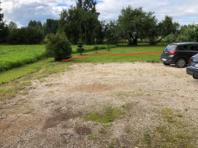 Hetkel olemasolevaks pealiskihiks nii parklas kui ka kõnniteel killustik, parkla suurendamiseks vajalik kaevata ka murupinnast. Parkla peaks kannatama aastas korra suurt veoautot. Eemaldatava pinnase saab planeerida krundile.