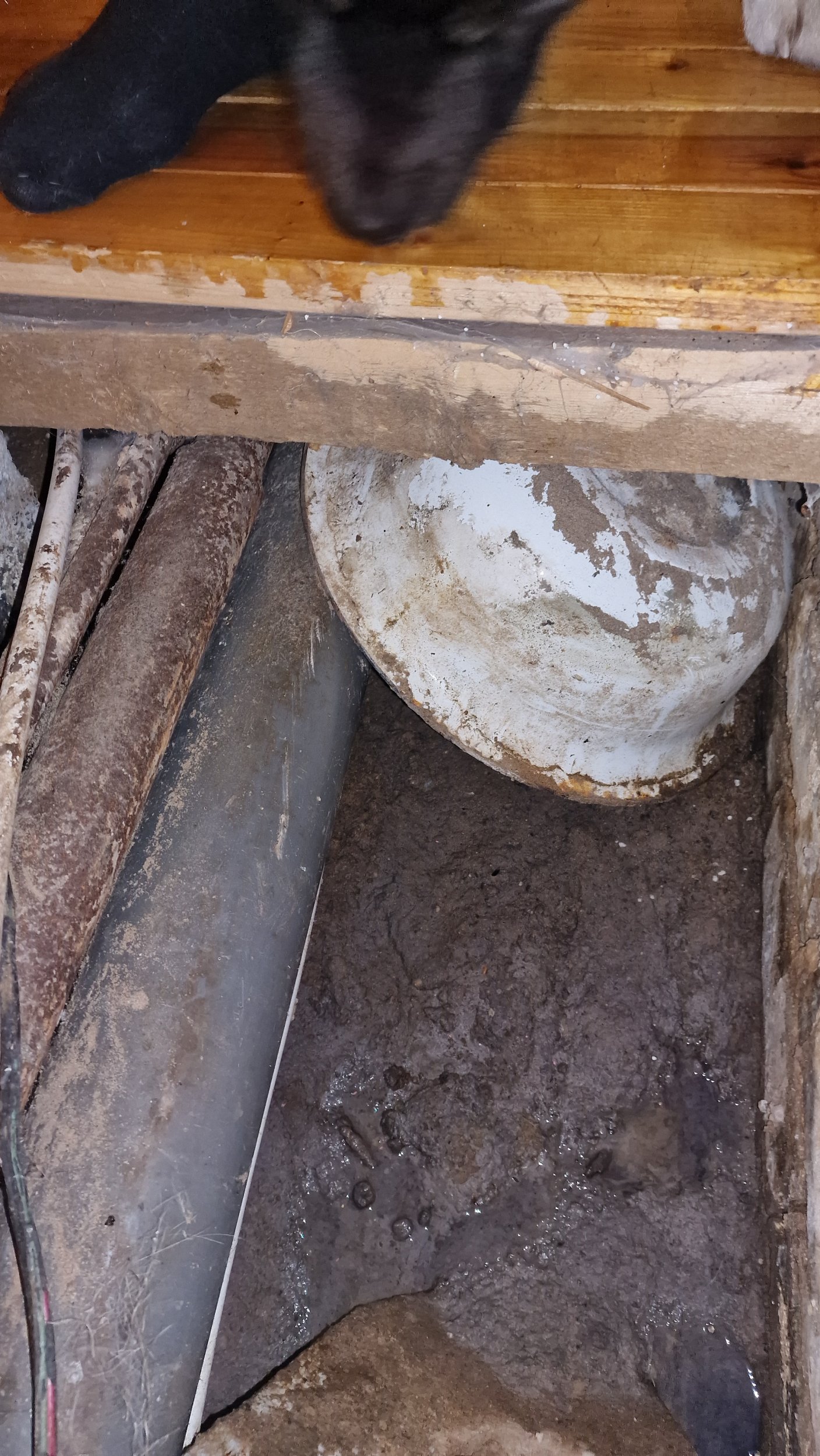 1. Majas põranda all on kanalistasiooni toru ühendus koht (90 kraadine nurg), mis on lahtine ja seega ajab veekali läbi ning ka sellega halba lõhna sisse.