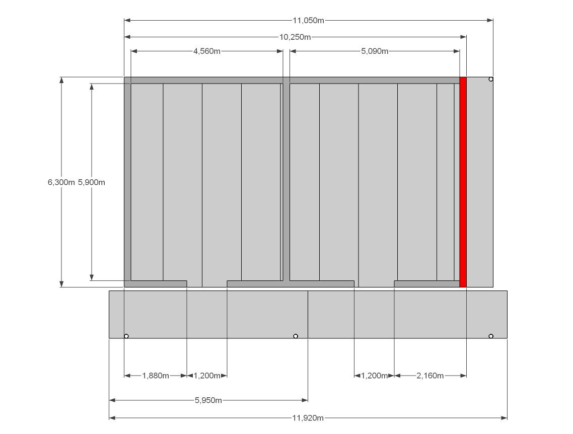 Avad välisseintesse ja välisseinte ning sokli soojustus. Joonisel punasega märgitud seina nihutamine põhjapaneelide servaga tasa. Olemasolev vahesein ei pea säilima.