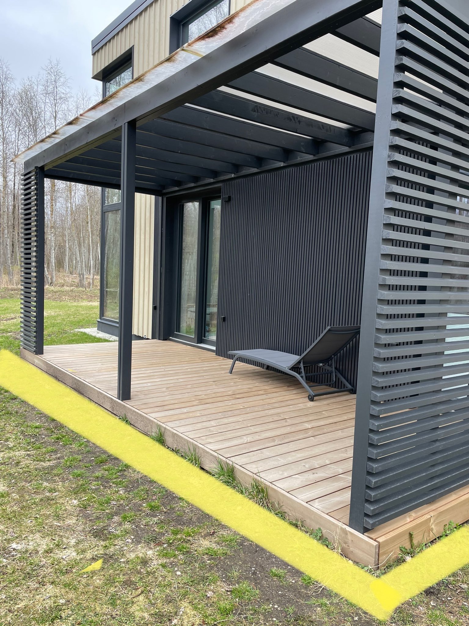 Kokku pikkust ca 30jm + 4jm topeltrida. Ümber maja on peenkillustik, ümber terrassi muld.