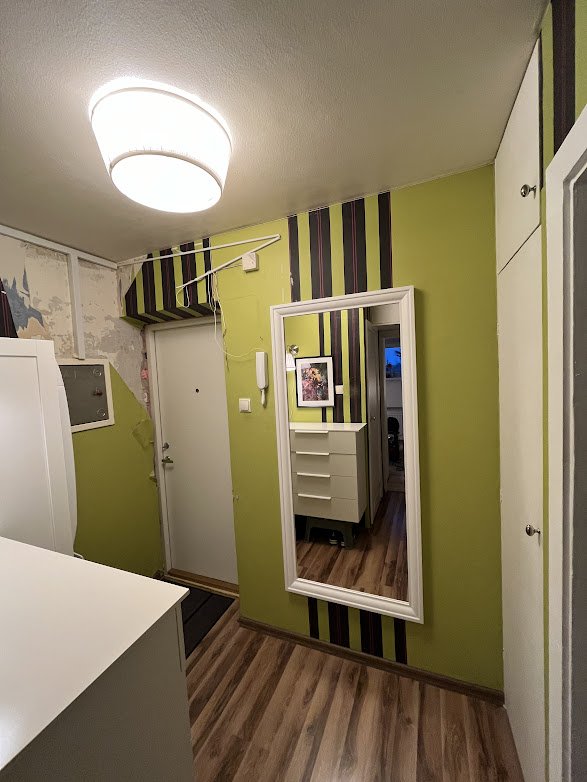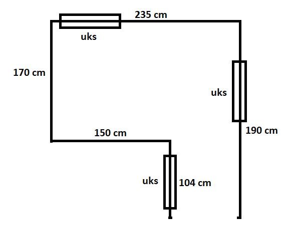 sein 235 (laius) x 245 (kõrgus) - uks (87 x 200), seina peal elektrijuhe peita