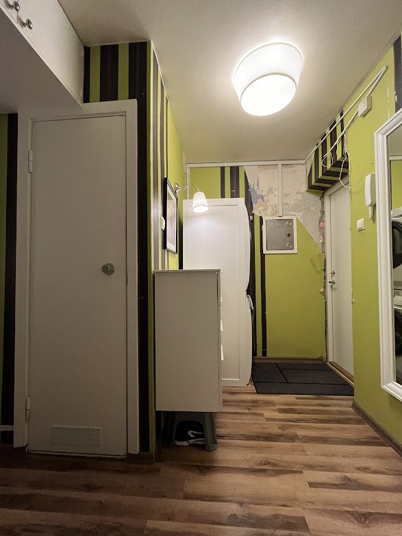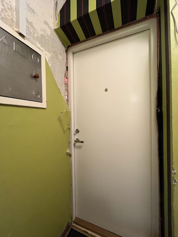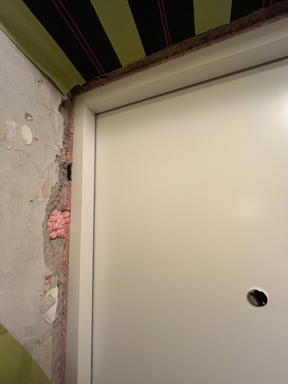 Hiljuti vahetatud välisukse siseviimistlus seestpoolt (seina- ja põranda äärtes vajab kerget täitmist ja viimistlust.