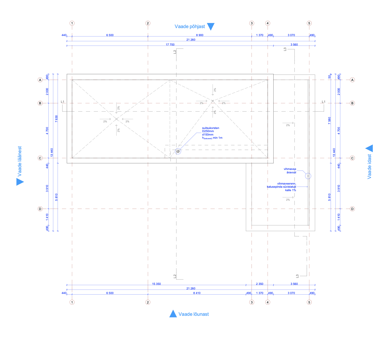 On vaja soojustada ehitatava maja katust - pind on ca 130 m2, projektis on kirjas, et katus on raudbetoon-õõnespaneelidel 265mm, kergkruusast ladekihiga kuni 150mm, soojustatud kivivillaga 250+50mm (tuulutusega) ja kaetud SBS-rullmaterjaliga. Katusel on 3 vihmavee äravoolurenni ning 1 auk kaminakorstna jaoks.