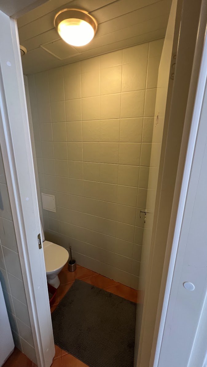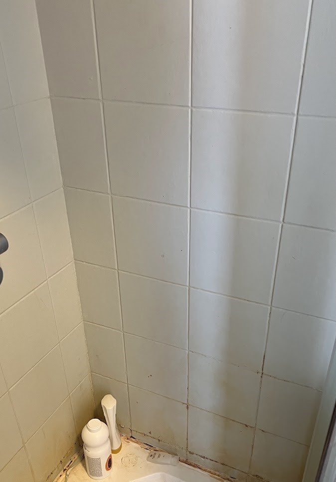 Vannitoa seinte plaadid on eelnevalt värvitud aga värv ei püsinud kaua dušinurgas.
