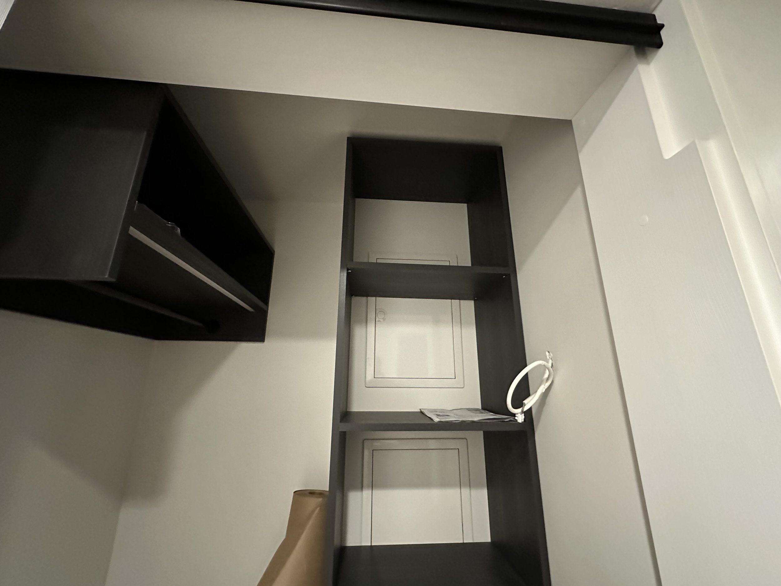 Pildist saab näha, et esikukapp asub nö niššis. Riidenagi on paigaldatud vasakpoolse seina peale ja elektrikaabel asub parempoolses seinas. Ehk oleks vaja paigaldada mingi karbiku seinale ja lakke. Lisaks lakke oleks vaja installida LED riba mis annaks valgust juurde.