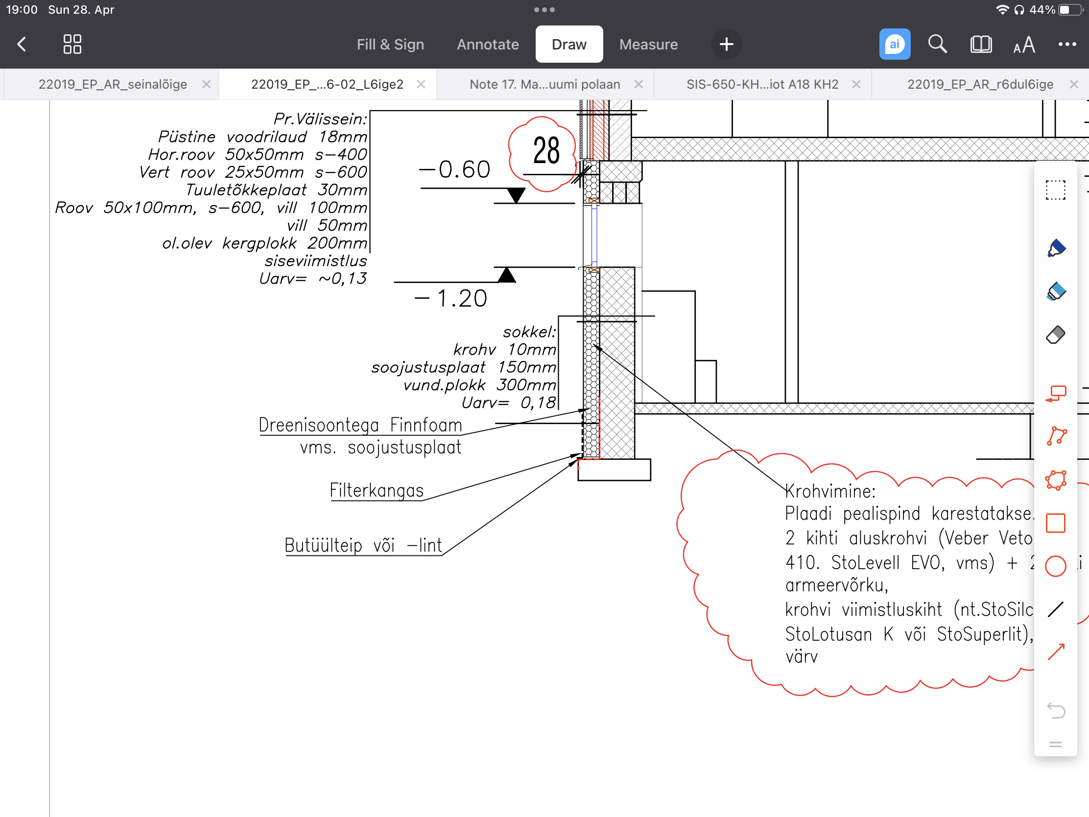 Osaline vundamendi soojustamine.Soojustatava osa pikkus 13m ja sügavus u.15m.Pinnas tuleb eemaldada ja taastäita Vundament soojustada vastavalt projektile.