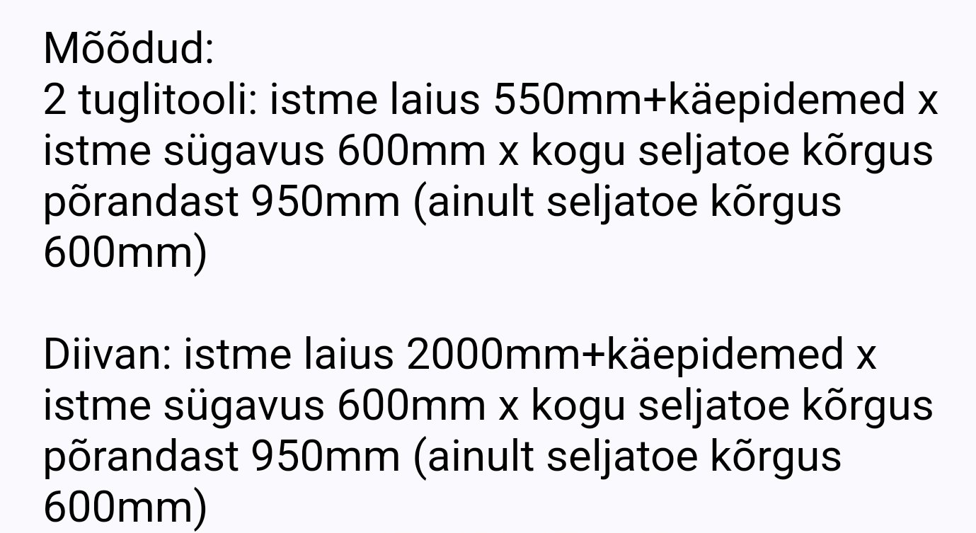 Sooviks riide vahetust diivanile ja kahele tugitoolile. Mööbli võin kohale tuua ise. Pakkuge hind ainult töörahaga.
