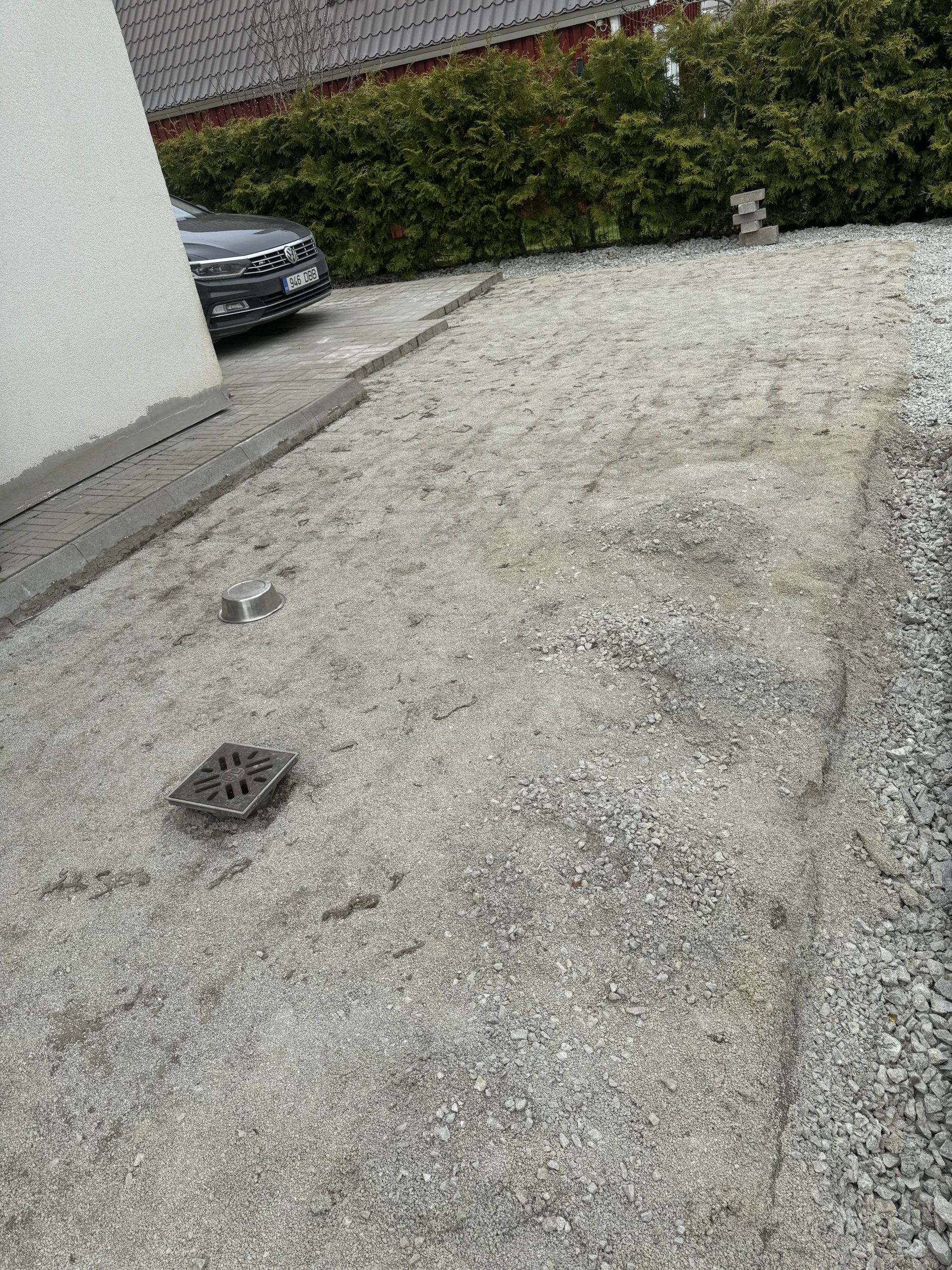 aluse ettevalmistus, äärekivi paigaldus, tänavakivide paigaldus. pindala 120-130 m2.