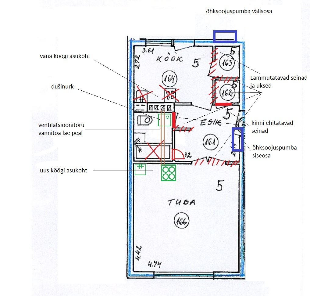Seoses korterisse õhksoojuspumba paigaldamisega on vaja esitada KOVile nõuetekohane projekt ja ehitisteatis. Samuti on plaanis muuta korteris planeeringut, tegemist on 1 toalise korteriga, kus sooviks köögi viia elutuppa ja teha 2 toaliseks avatud köögiga korteriks. plaanis on ka eemaldada mõned väiksemad mittekandvad seinaosad ja muuta vannitoa/wc ukse asukoht.