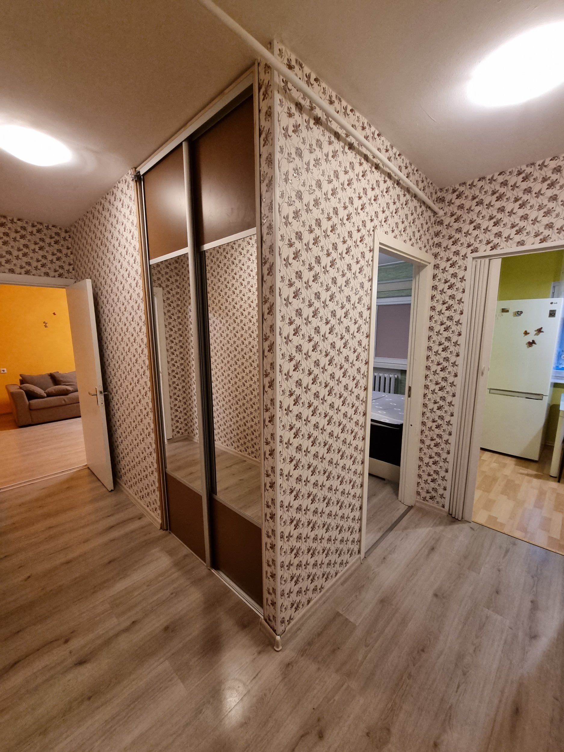 Koridor. Põrandapind 1.2 x 6.11 m ning lisaks on koridoris sisseehitatud kapp, mille all on põranda pinda ca 1.6x0.6 m ning ka selle all on vaja laminaat vahetada. Lisaks põrandaliistude vahetus.