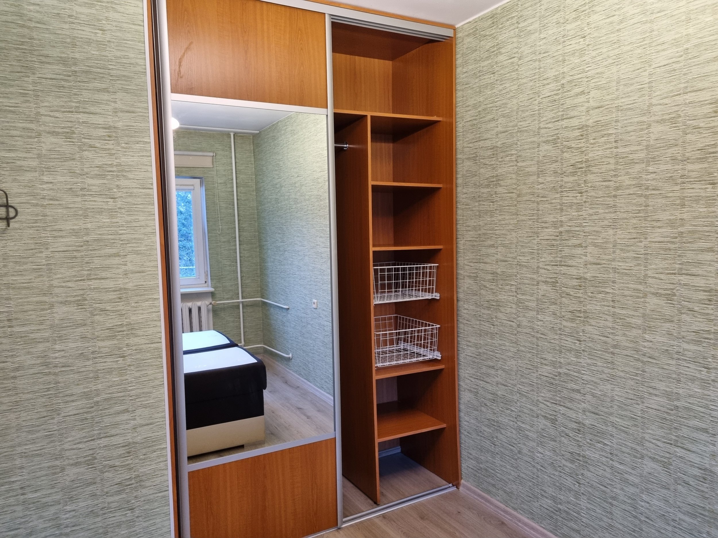 Magamistuba. Põrandapind 2.90x3.65 m ning lisaks on toas sisseehitatud kapp, mille all on põranda pinda 1.6x0.6 m ning ka selle all on vaja laminaat vahetada. Lisaks põrandaliistude vahetus.