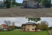 Ala on 11x9 meetrit. Oleks vaja, tõenäoliselt mini kopaga eemaldada kogu pealne pinnas ca 10cm koos võsa juurestikuga. Siis känd freesida. Peale uus mulla kiht ning ilusti sirgeks ajada. Kogu kaabitud pinnas ja võsa ära viia. Eelduslikut võiks piisata umbes 4 tonni mullast.
