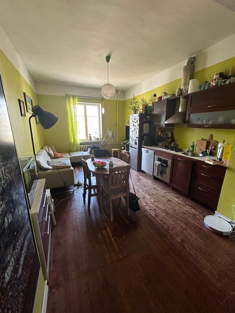 Vajame kolmetoalise korteri kapitaalremonti (55m2). Korter asub Tallinna kesklinnas Uue Maailma asumis neljandal korruse 50ndate kivimajas (nn staliniaegne maja). Võimalus parkida tasuta maja sisehoovis. Viimati tehti kapitaalremont 20 aastat tagasi. Algse korteri plaaniga võrreldes on WC ja vannitoa vaheline sein maha võetud, köögi jaoks mõeldud ruum muudetud magamistoaks ning esiku ja elutoa vaheline sein eemaldatud.