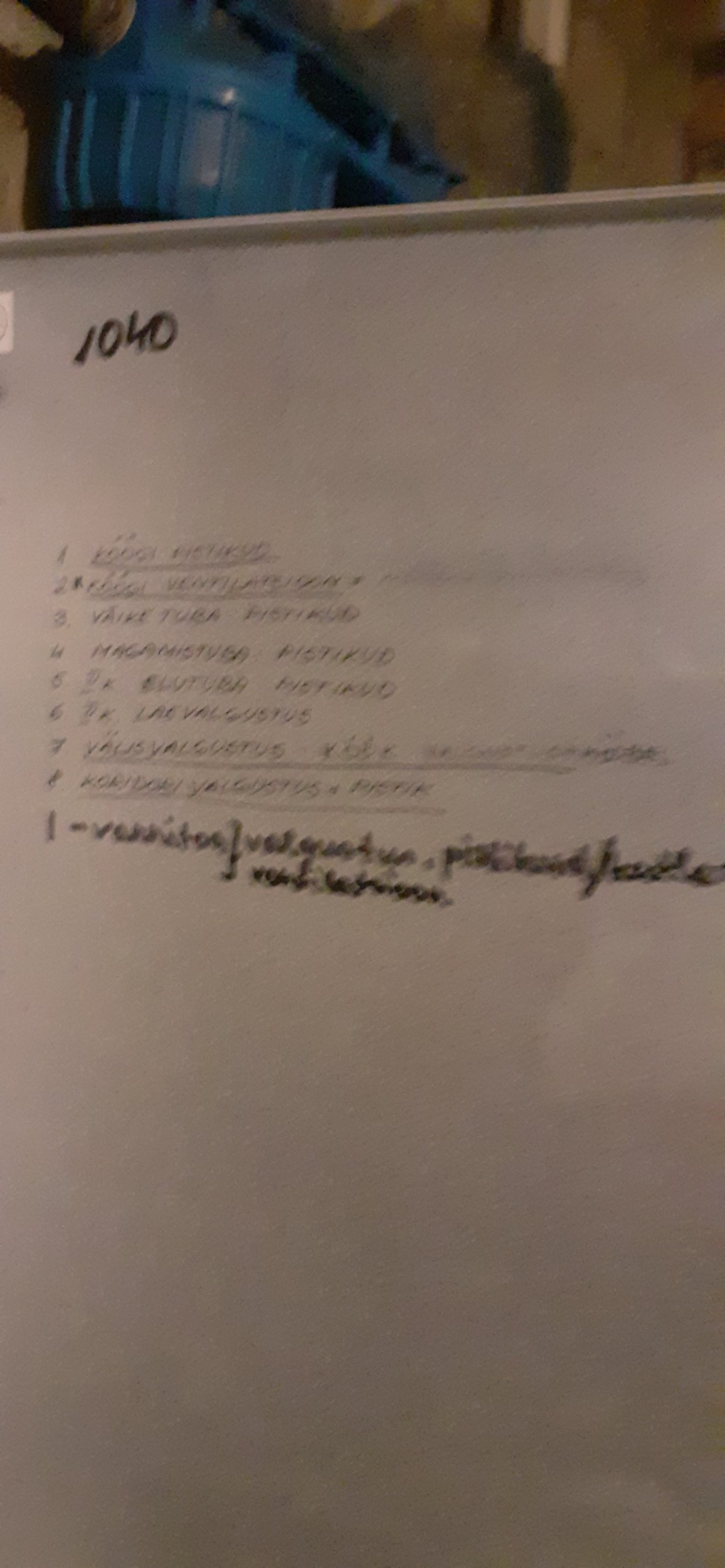 Pakkumine sisaldab konsultatsiooni, kilbi montaazi töid ning maanduse paigaldust. Eelnevalt jäi silma, et hankes oli märgitud jooniste olemasolu ka? Sel juhul lisanduks maja teoststusjoonis oleks 100, kilbijoonis 50. Materjal lisanduks hinnale (350) Materjali hind sisaldab: - uus kilbi kest (volta 4x12) - kaitselülitid ja rikkevoolukaitsmed - maandusvardad ning maanduskaabel - muud ühendamiseks vajaminevad tarvikud(hülsid, montaazikaabel, voolusiinid, neutraaliklemmid jne). Käibemaks lisanduks arve puhul. Küsimuste korral julgesti kirjutada pakkumise vestlusesse. Tööd võimalik teostada ka sellel nädalal. Lugupidamisega |