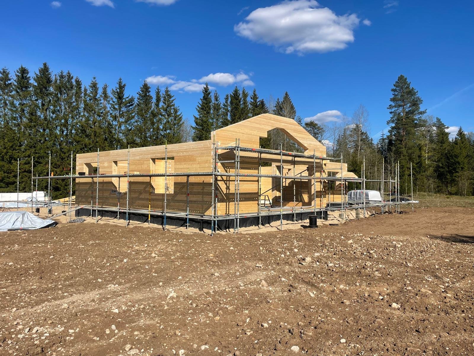 Infoks - lintvundamendi lint ja tagasitäide on juba teostatud ning hetkel püstitatakse liimpuit palke.