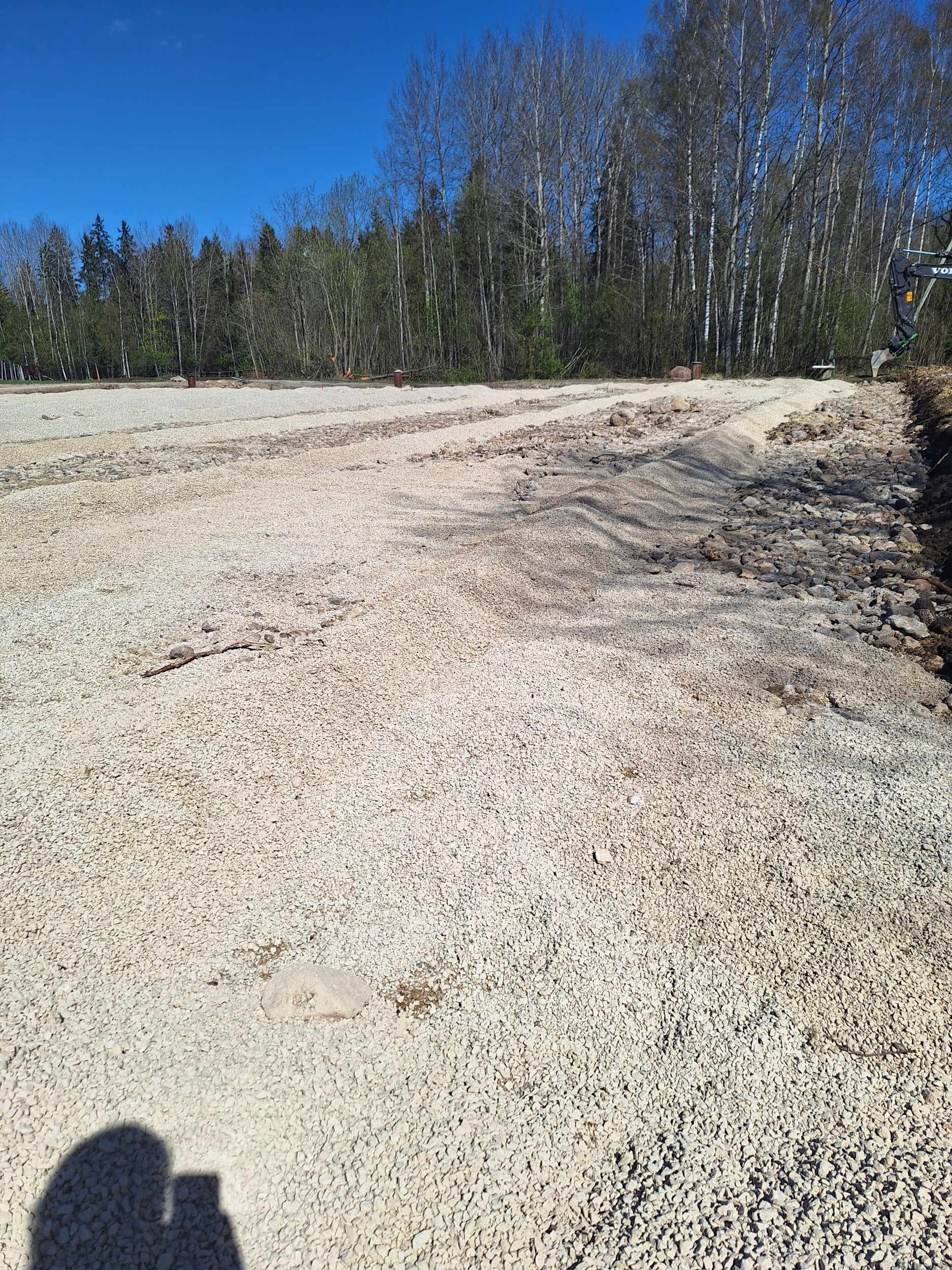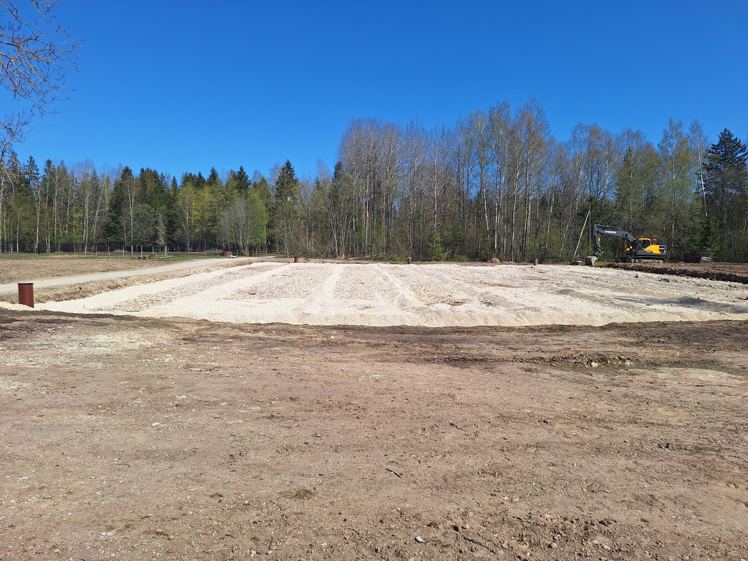 Platsi suurus ca 45x45m. Tarvis drenaaži torude vahed ära täita kruusa, sõelmete või muu pinnasega, mis tekitab tugeva aluskihi (muld/savi ei sobi).