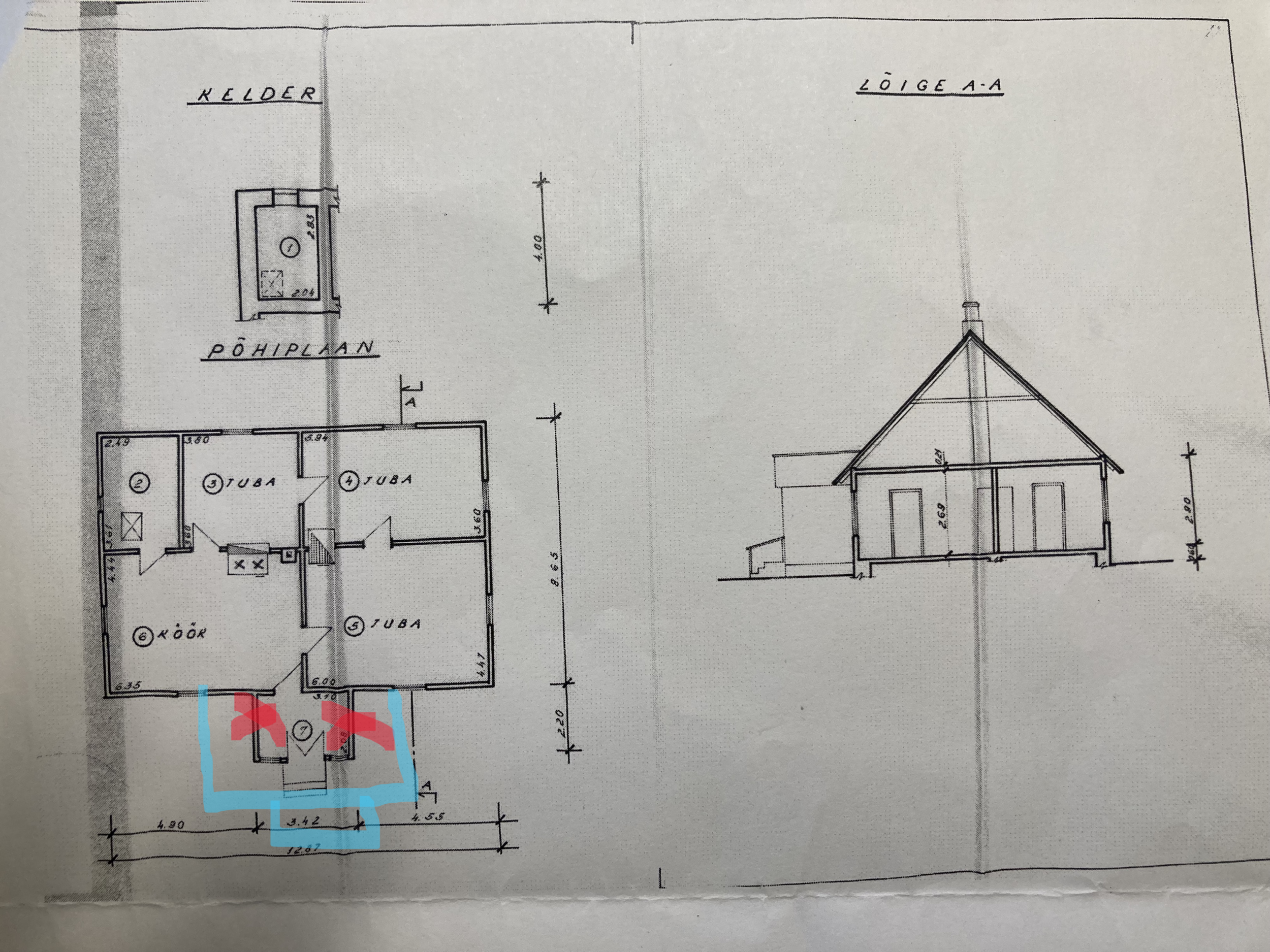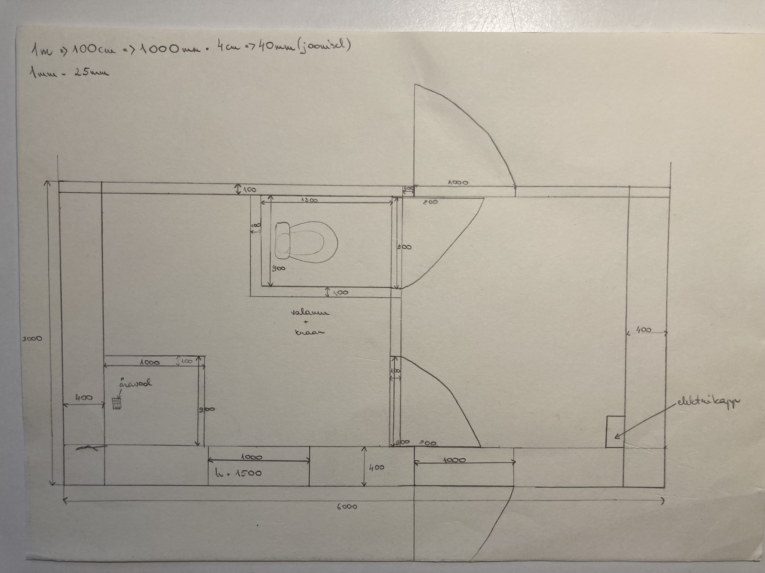 Lisasin siia mõned pildid käsitsi loodud joonistest. Küsi julgelt lisainfot ja mõõte. Samuti on lisatud pildid eelnevast olukorrast ja tööfaasist. Juurdeehitusse tulevad koda, tualett ja vannituba.
