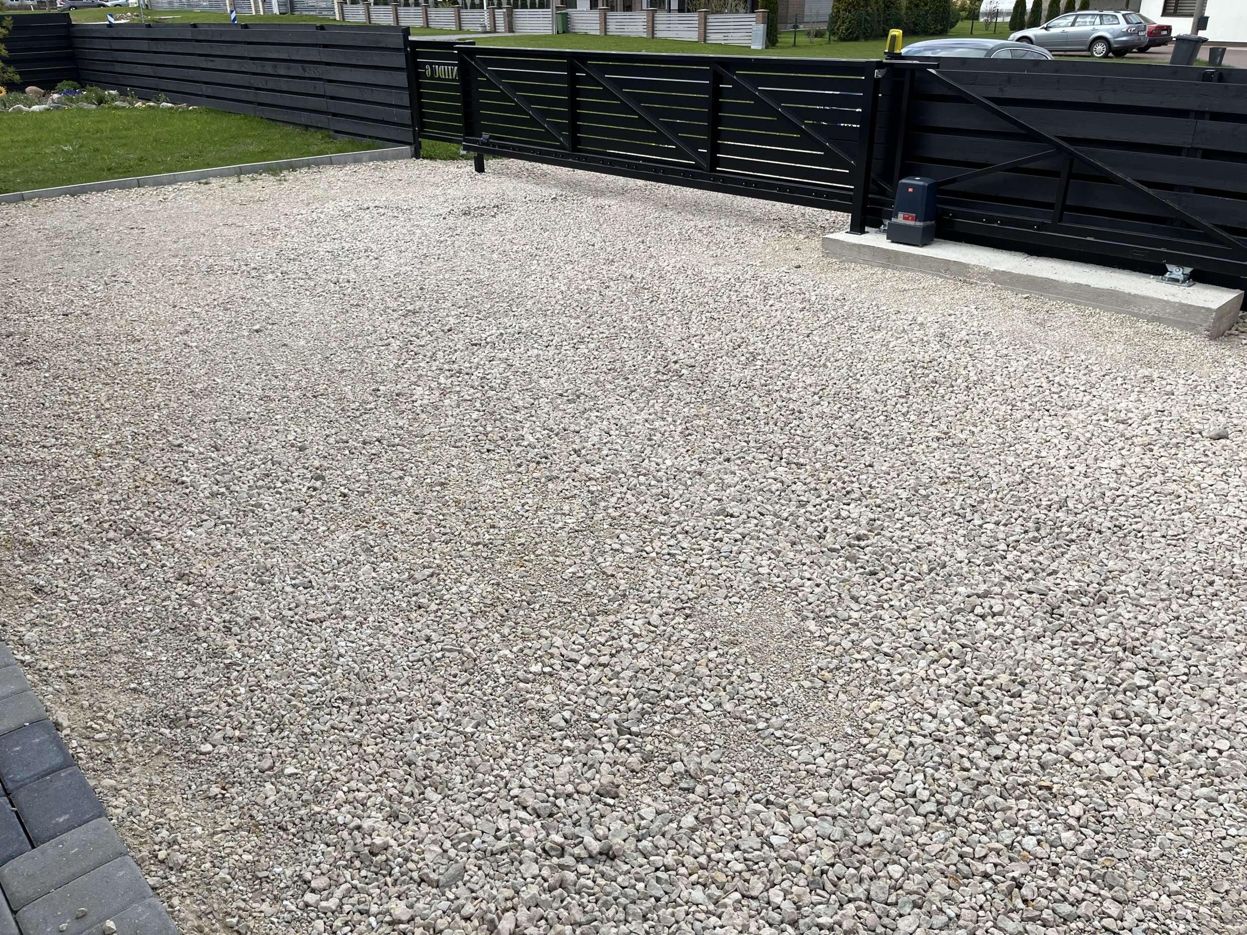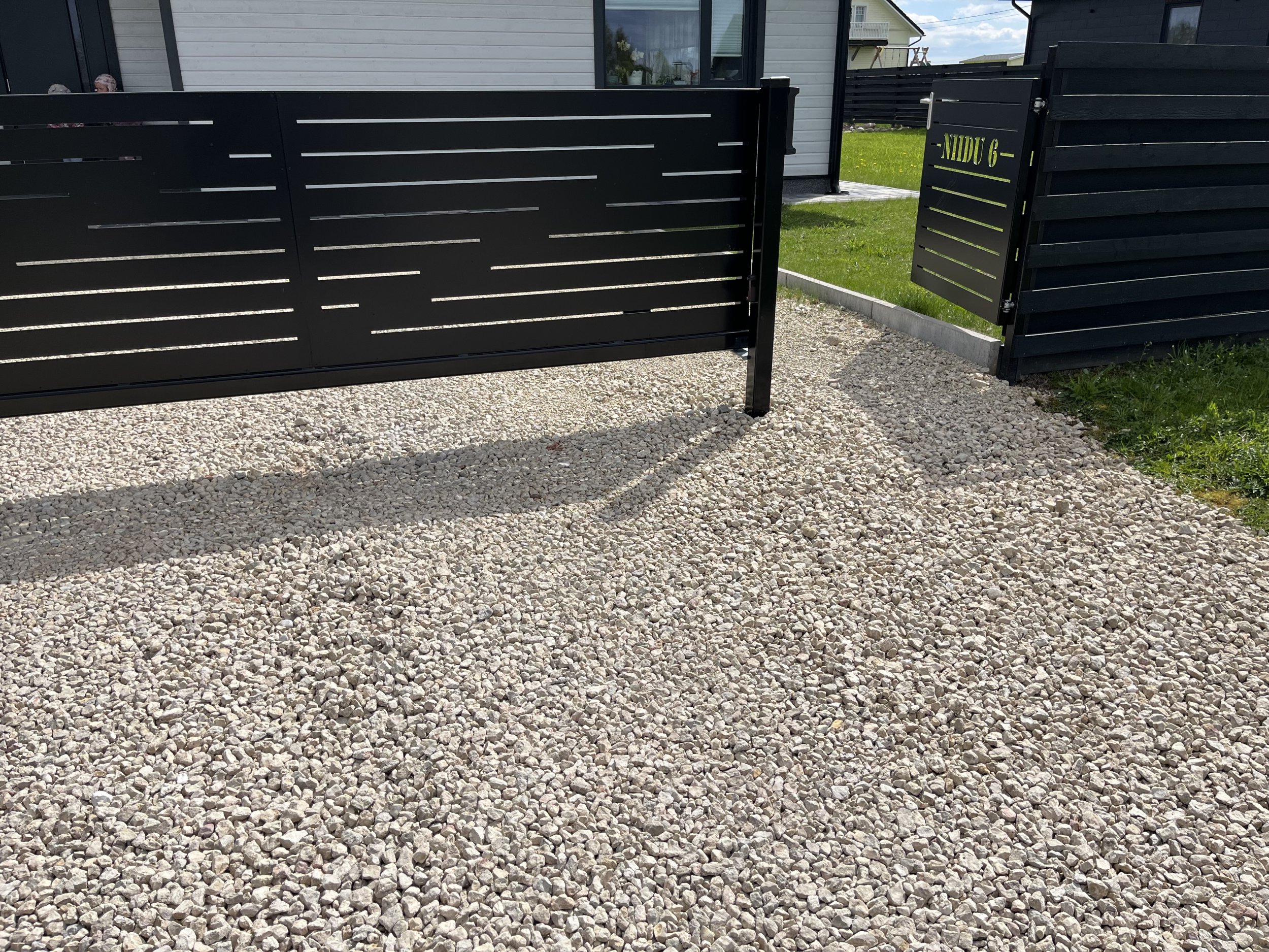 Äärekivide paigaldus ainult värava ette (Pealesõit - ca. 6m). Kasutada sõidutee äärekivi 150mm.