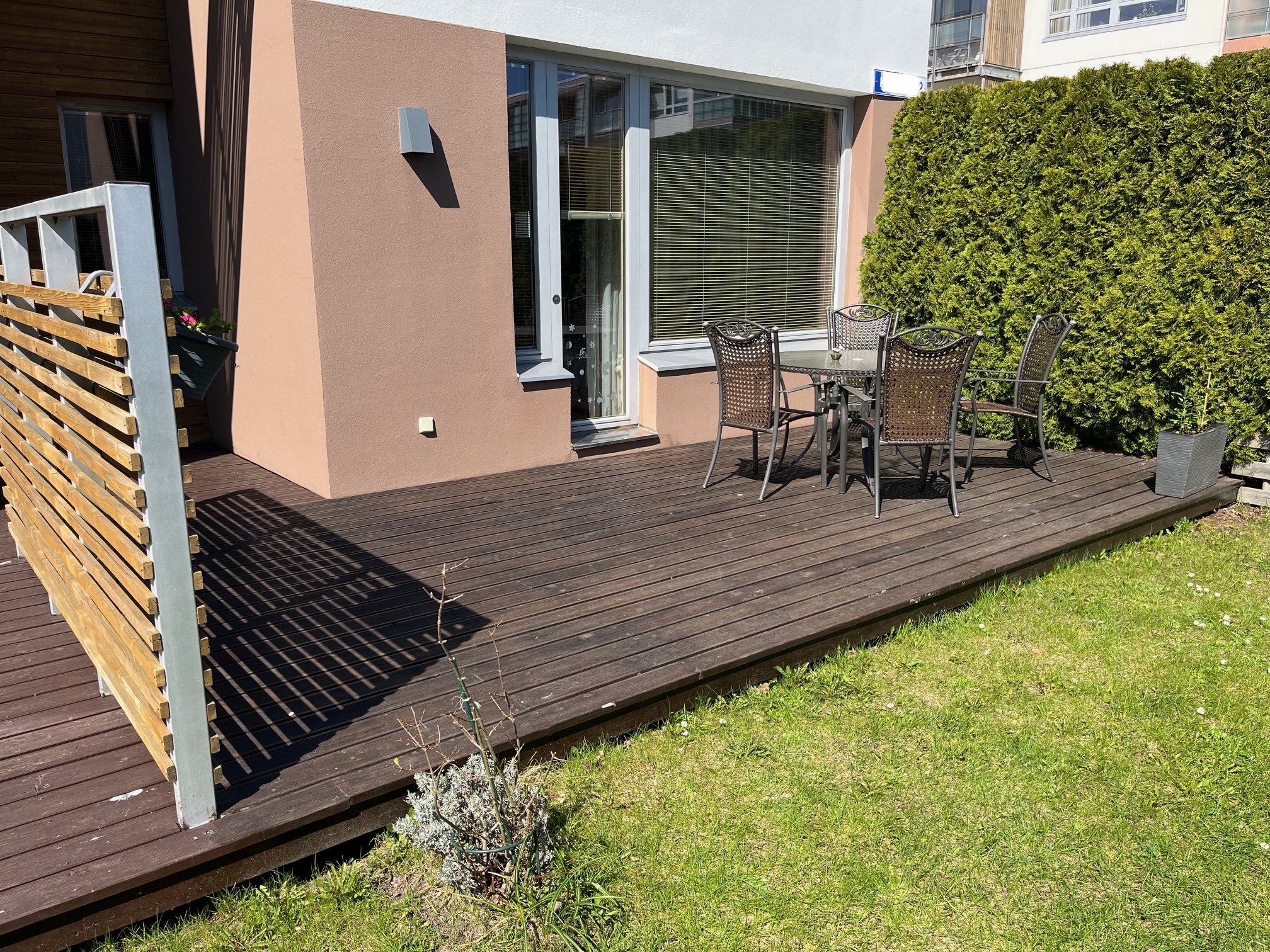 Pakkumus koostatud hinnaga 60€/m2 ja sisaldab: 1. Vana laudise demontaażi ja utiliseerimist. 2. Aluskonstruktsiooni kontrolli (kui selgub, et miski vajab vahetamist, siis vahetatavad detailid lisanduvad hinnale kokkuleppeliselt). 3. Uue terrassilaua paigaldust rakisega (kruvid peidus, pinnuvaba). Lauaks immutatud, pruun, 28x120mm (sama laud, nagu vana, kuivab hiljem natuke kitsamaks). 4. Kõiki tööks vajalike materjale ja ilmastikukindlaid kinnitusvahendeid. 5. Tekkinud jäätmete utiliseerimist. Parimat, Mikk |