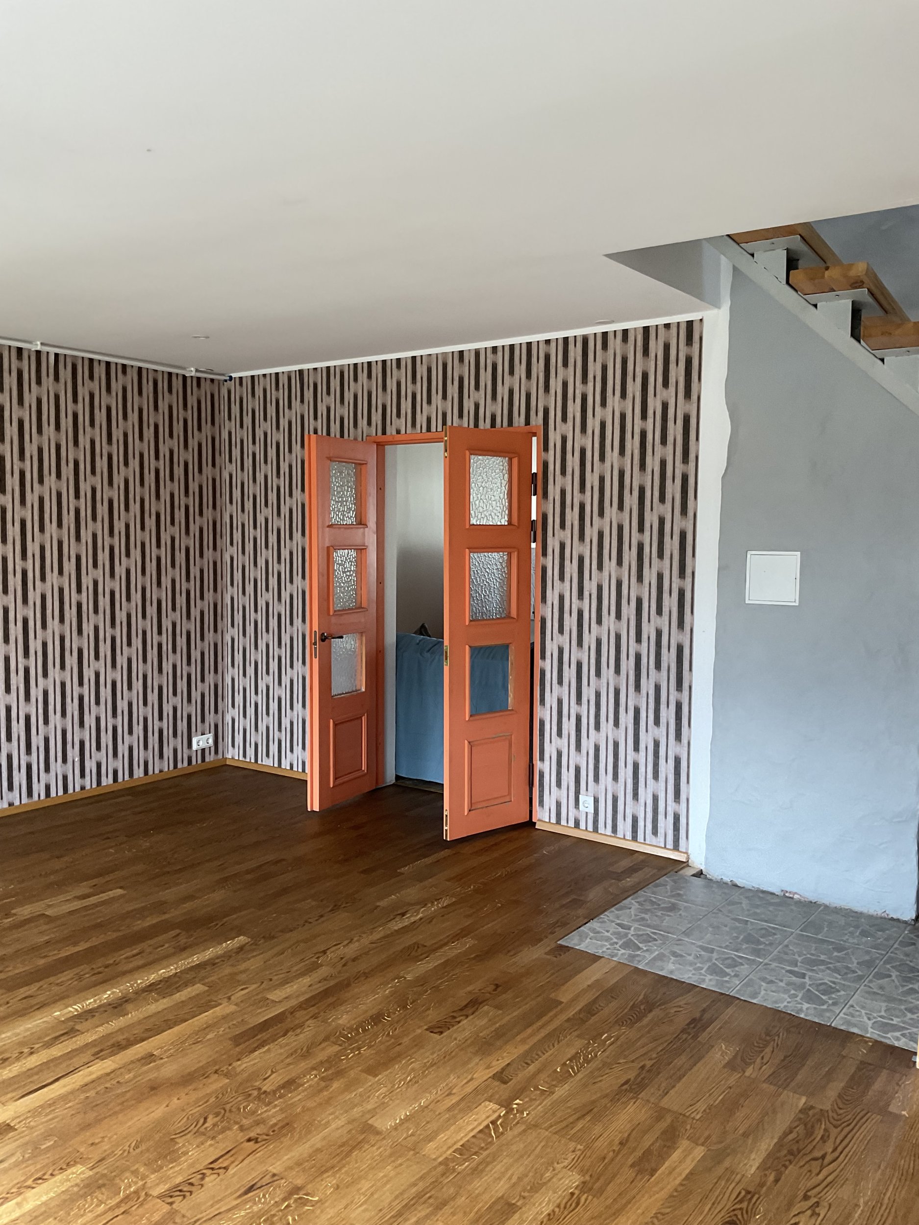 Tuba 27 m2. Kõrgus 2500. Tapeet maha, seinad sirgeks ja valgeks. Lagi puhtaks, sirgeks ja valgeks