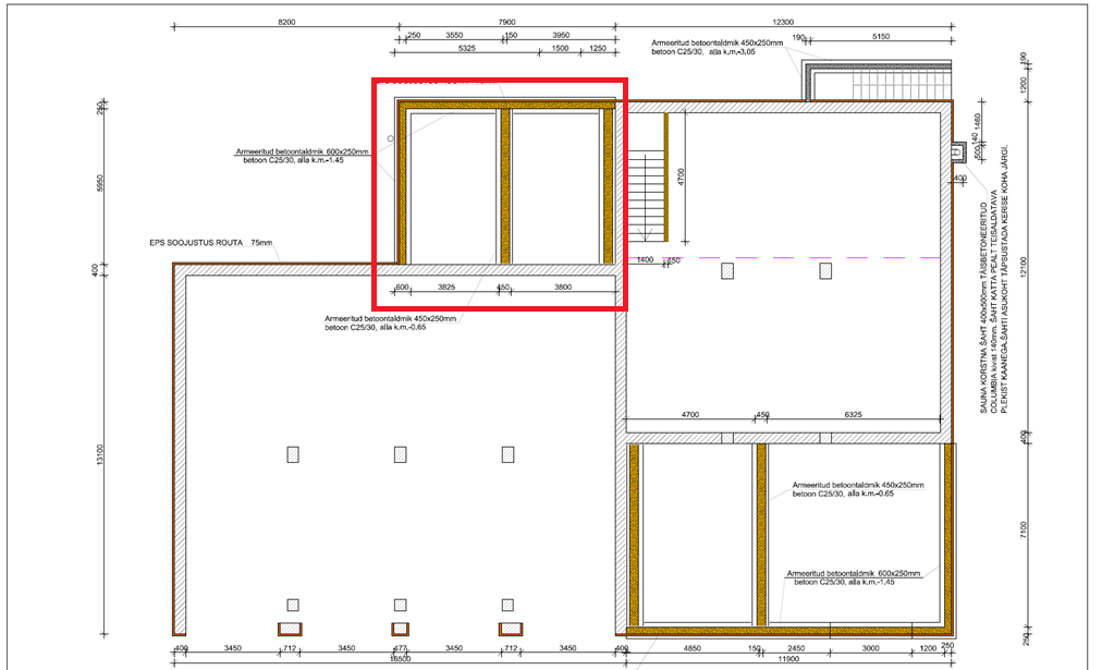Katlamaja akna laius nii lai kui võimalik ning kõrgus 1/2 seina kõrgusest, aken asub seina ülemises osas. Lae kõrguseks 2500mm.