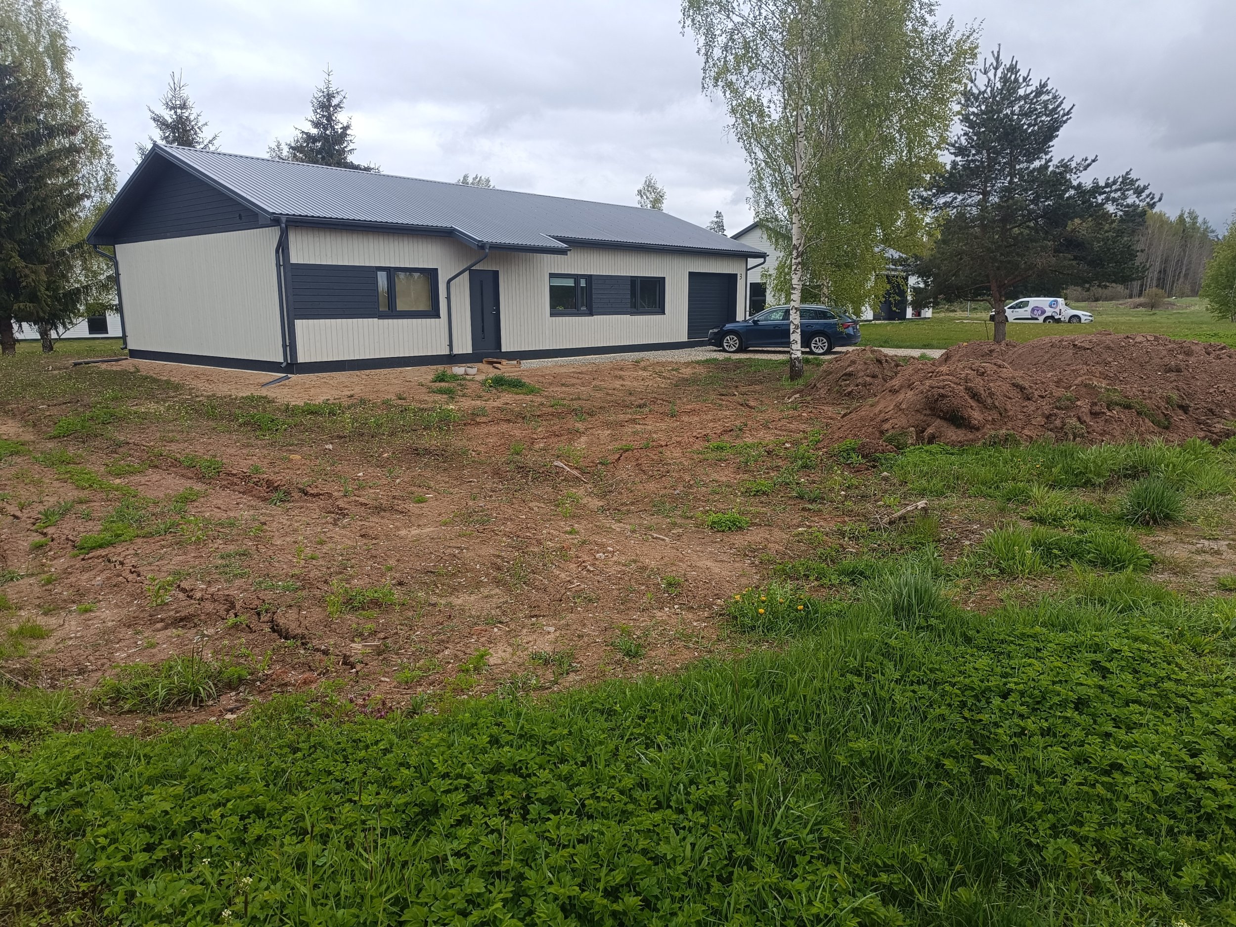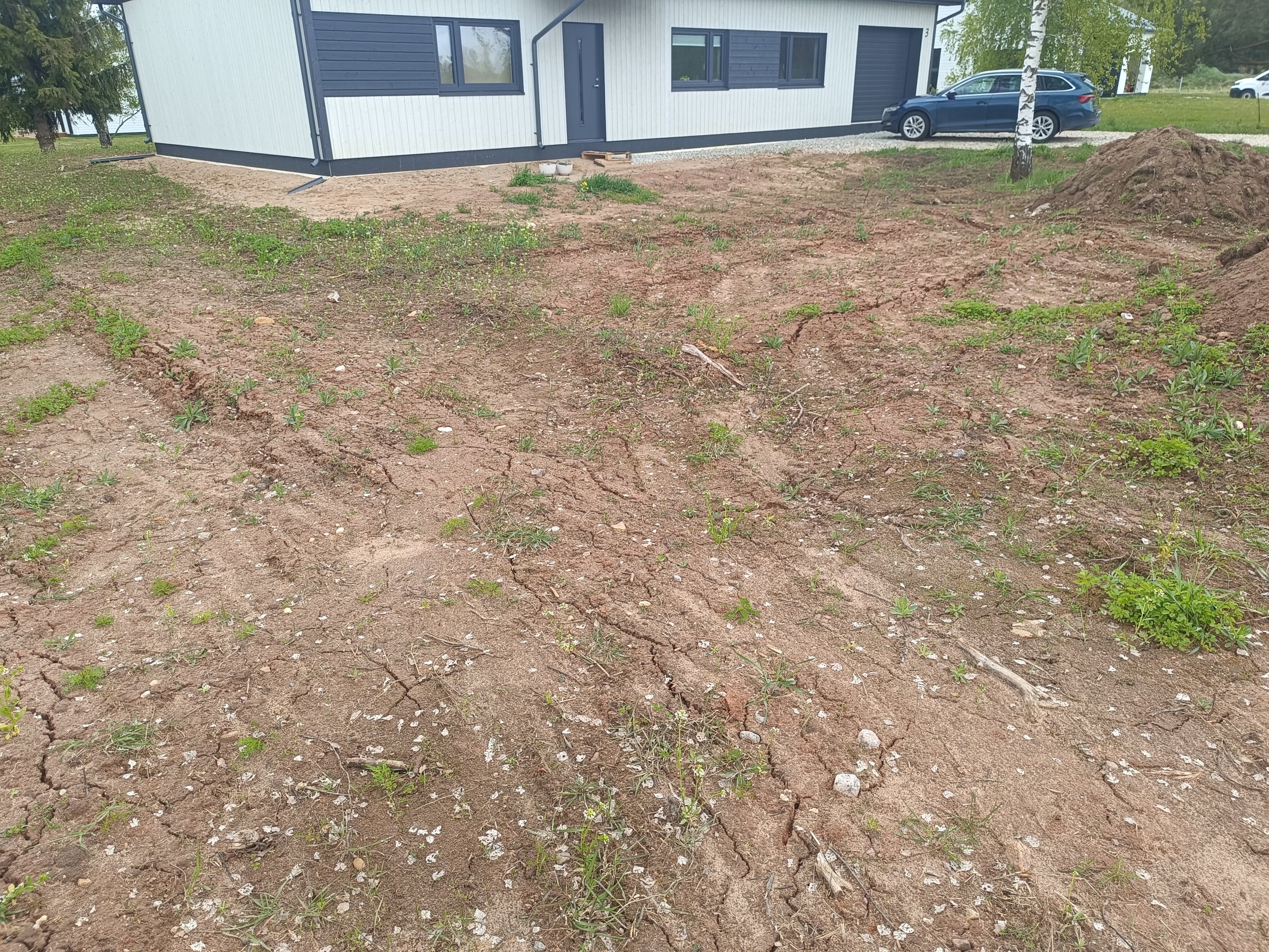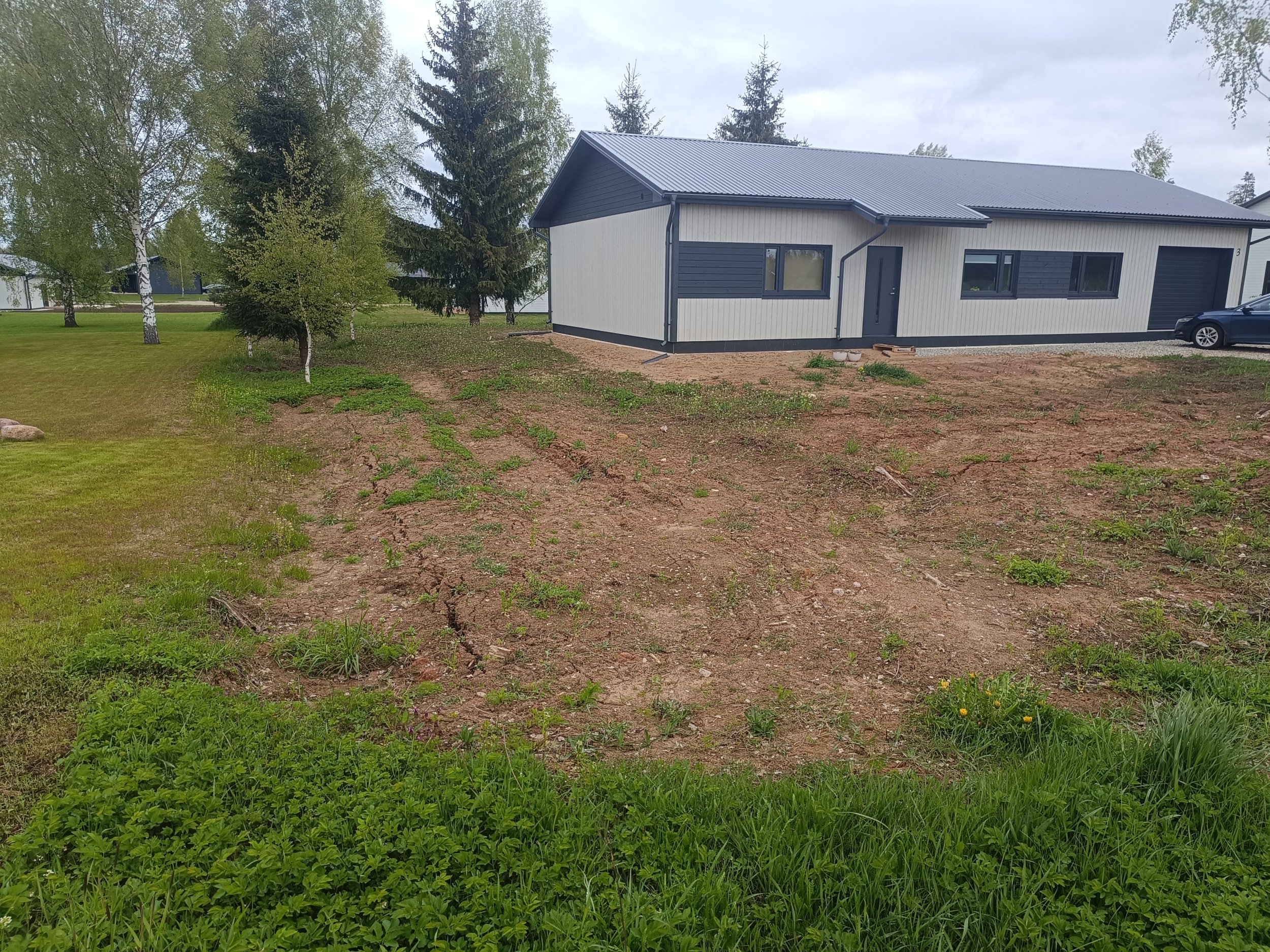 Sooviks on eramaja ümbruses pinnase tasandamine(koorimine ja täitmine) ja haljastustööd (muru rajamine). Töödealuse pinna suurus ~1300 ruutmeetrit.