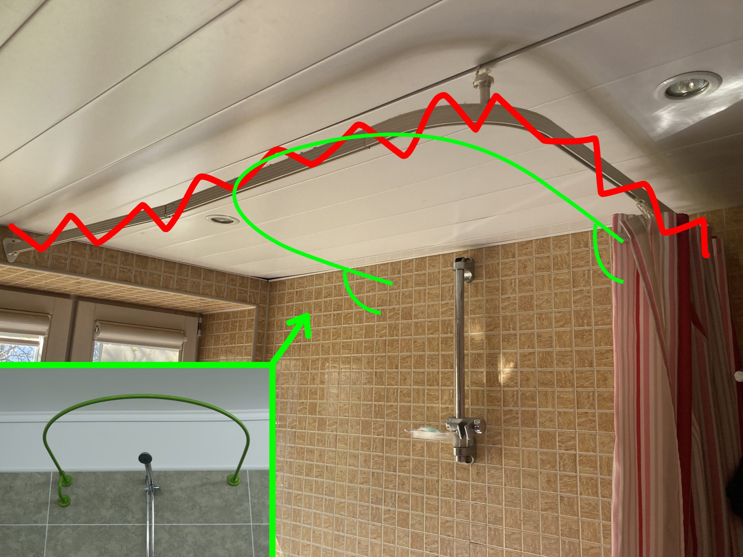 1. Paigaldada dušikardinapuu ja eemaldada vana (kardinapuu on olemas koos kinnitusvahenditega). Vaja oleks puurida läbi keraamilise plaadi ja kinnitada dušikardinapuu seina.