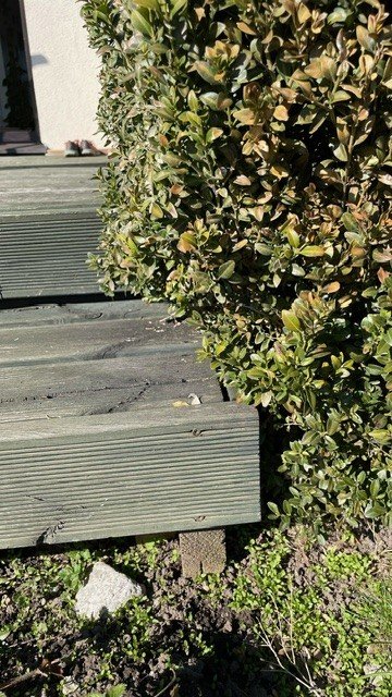 Ridaelamu terrassi vahetus ca 24 m2, uued tugipostid, mis puidust ja mädanenud, 2 astet, terrassi kõrgus maast