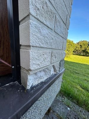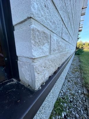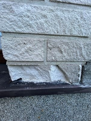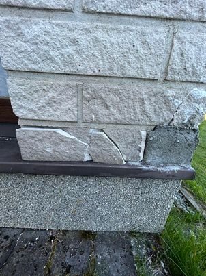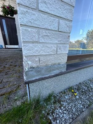Oleks vaja niiskus peatada katkistesse telliskividesse minemast ja taastada/vahetada katkised kivid. Kokku kive 12tk ,mis vajavad remonti n.ö. Ilmselt taastamisel jääb tooni vahe,kui valgest betoonist saaks parandused teha,aga sellega olen arvestanud. Vajadusel on tagavara kive olemas 50 tk.