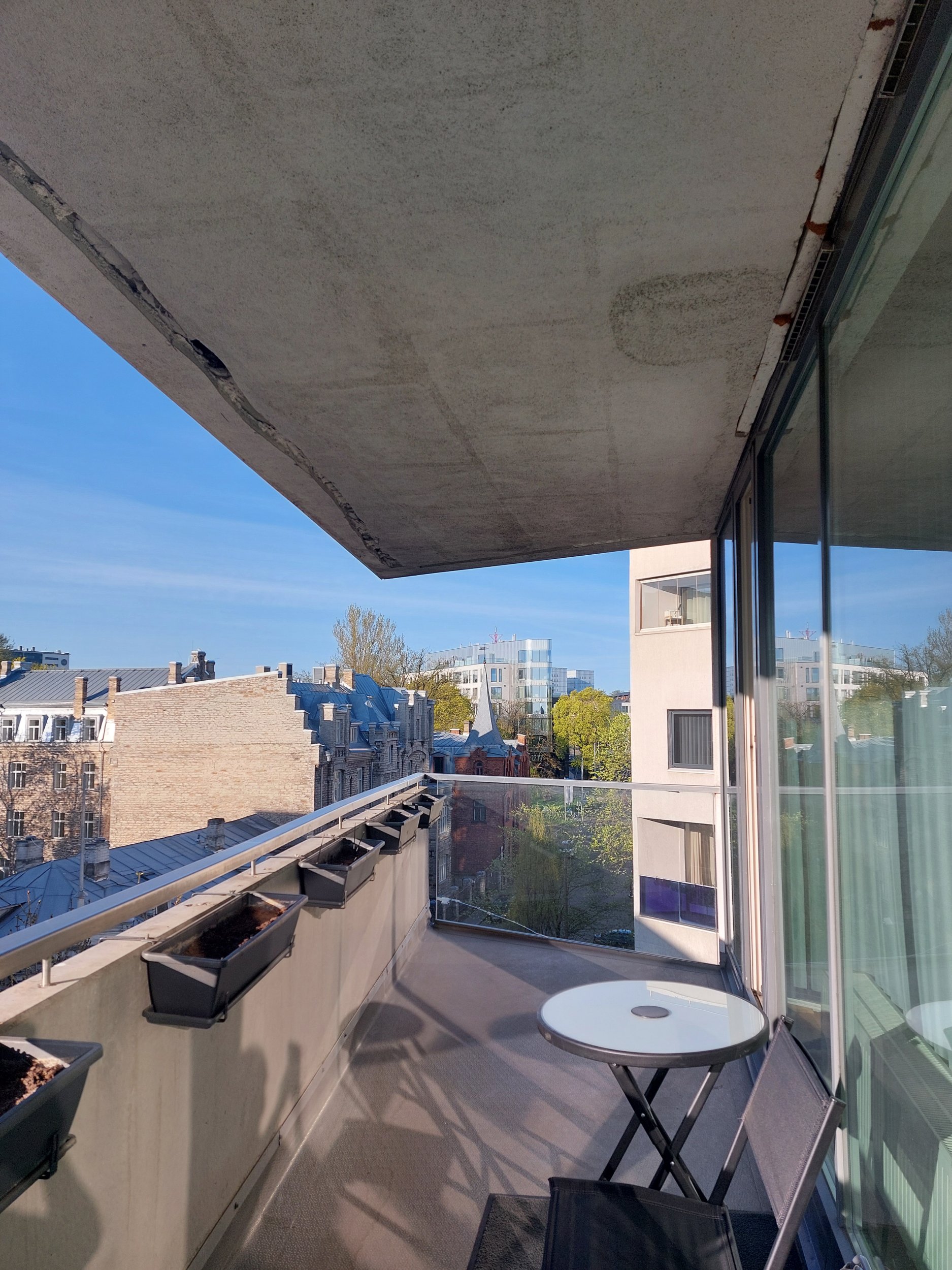1. Eemaldada 5. ja 6. korruse vahelise rõduplaadi alapinnalt 11,5 m2 ulatuses märgunud soojustuskihid ja tsementkiudplaat (kuni r/b vahelae plaadini), rõdu lagi uuesti üles ehitada (on olemas tööjoonis) ja krohvida. Rõdule pääseb läbi korteri.