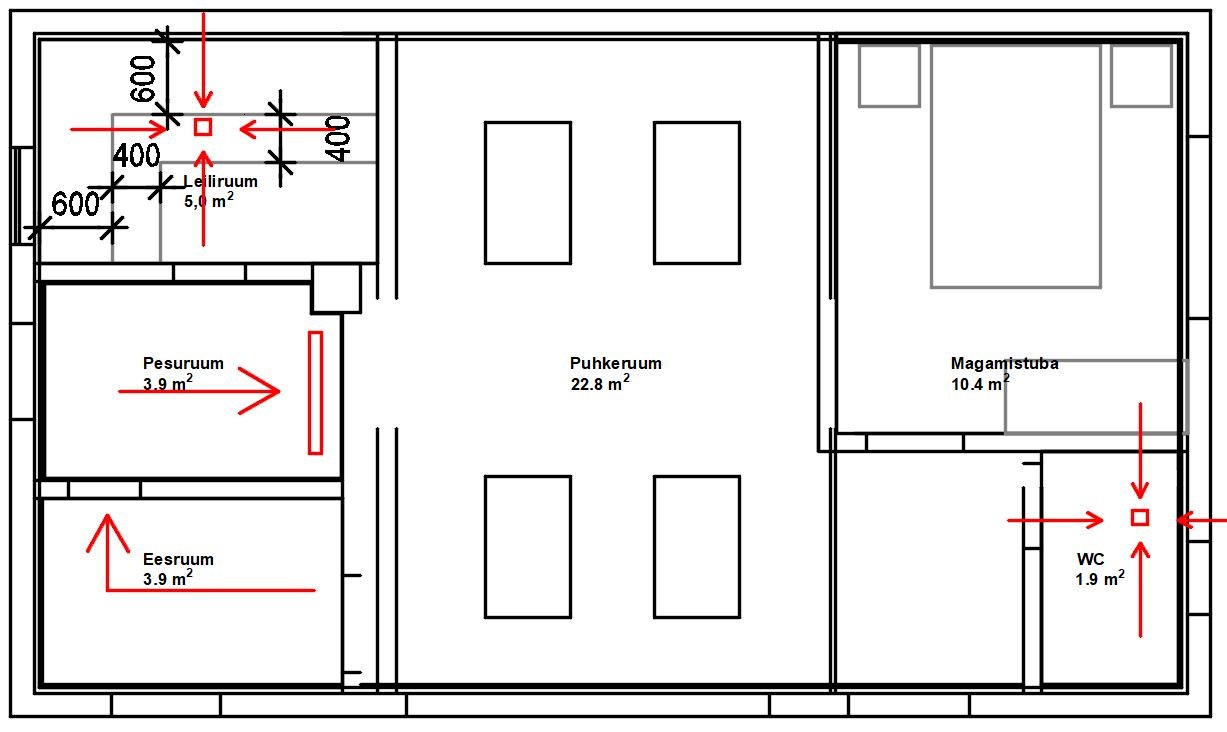 Kahes ruumis on avariitrapp, kalded minimaalsed, ühes ruumis puudub trapp (vaja teha ühesuunaline kalle pesuruumi suunal) ja ühes ruumis on duširenn.
